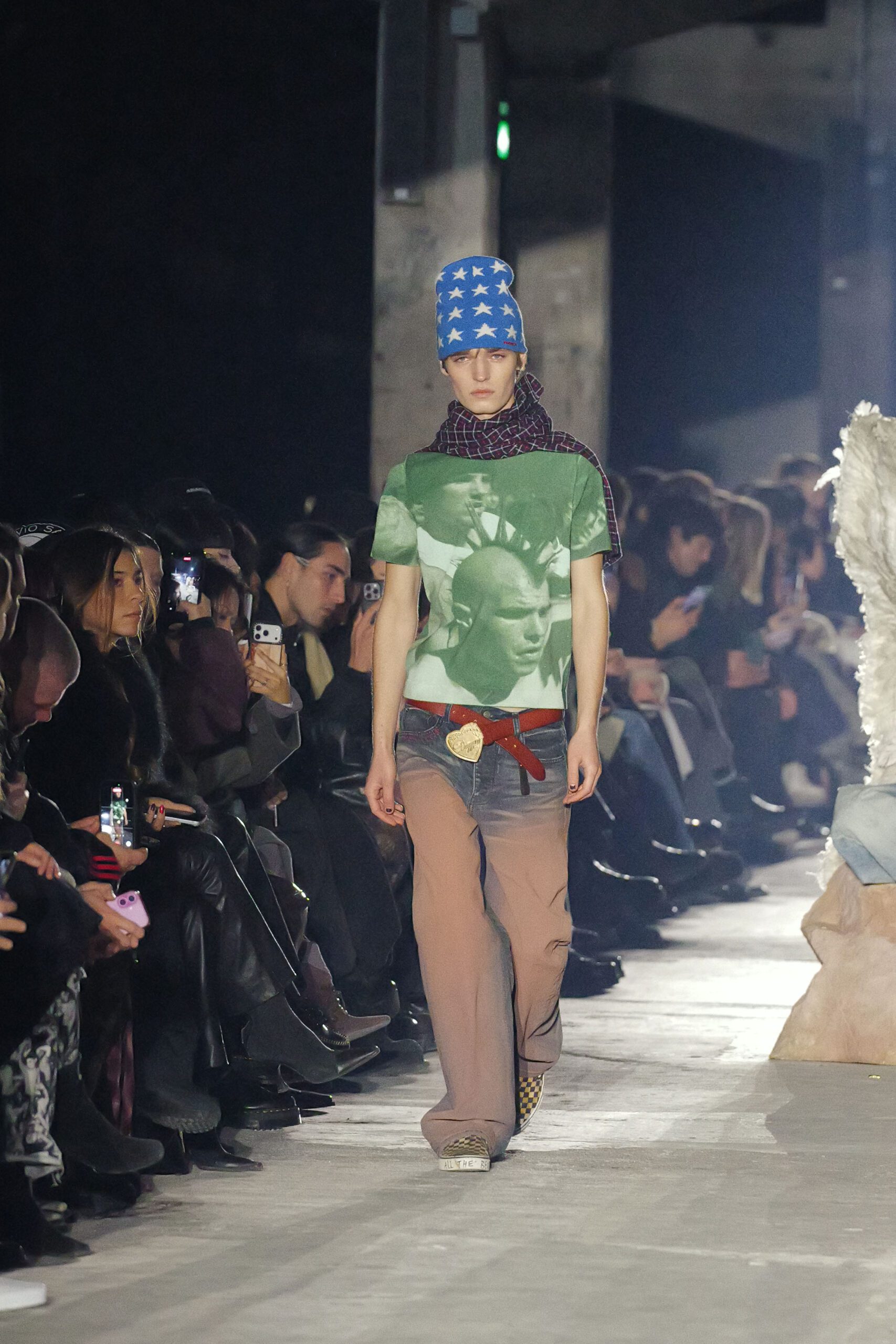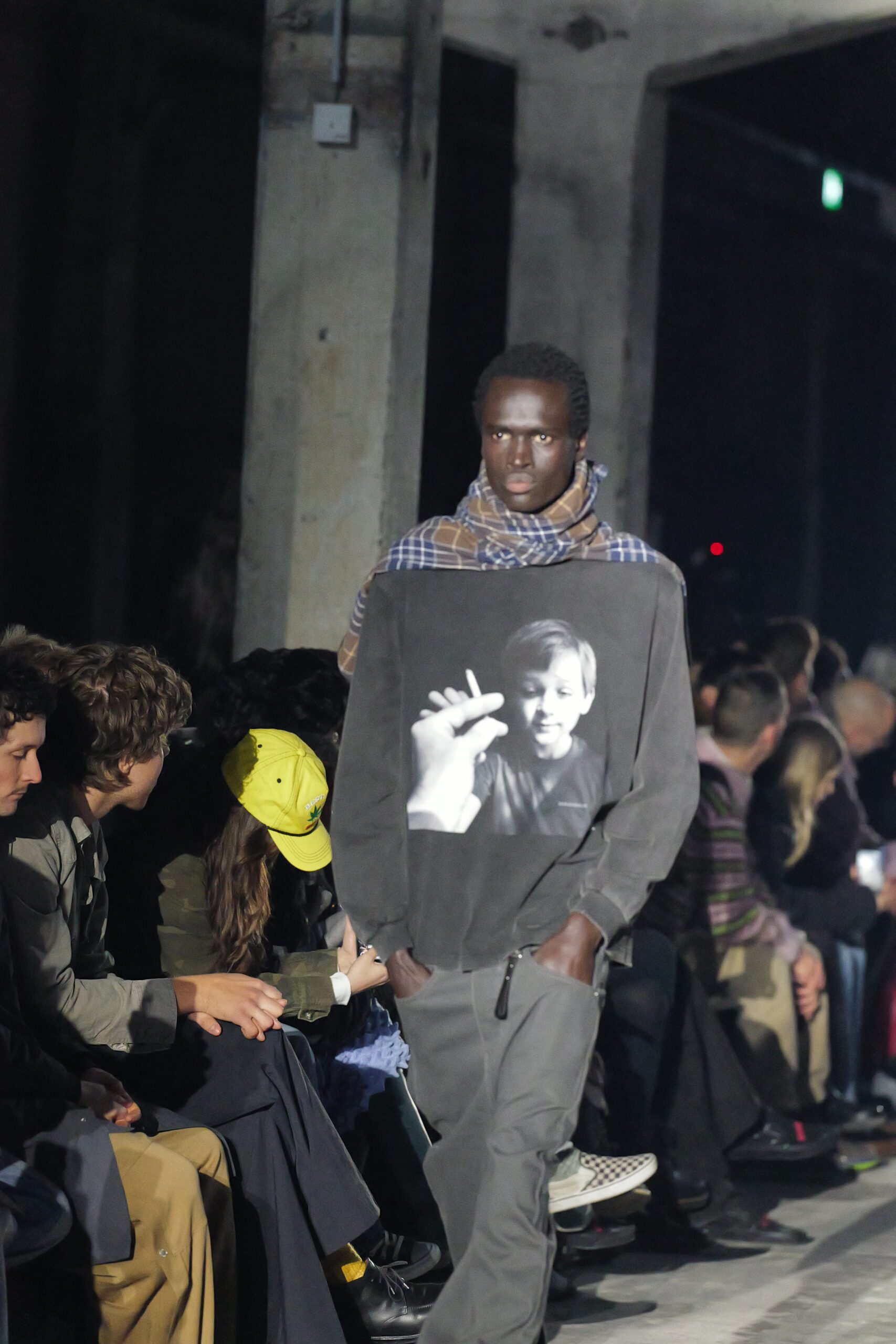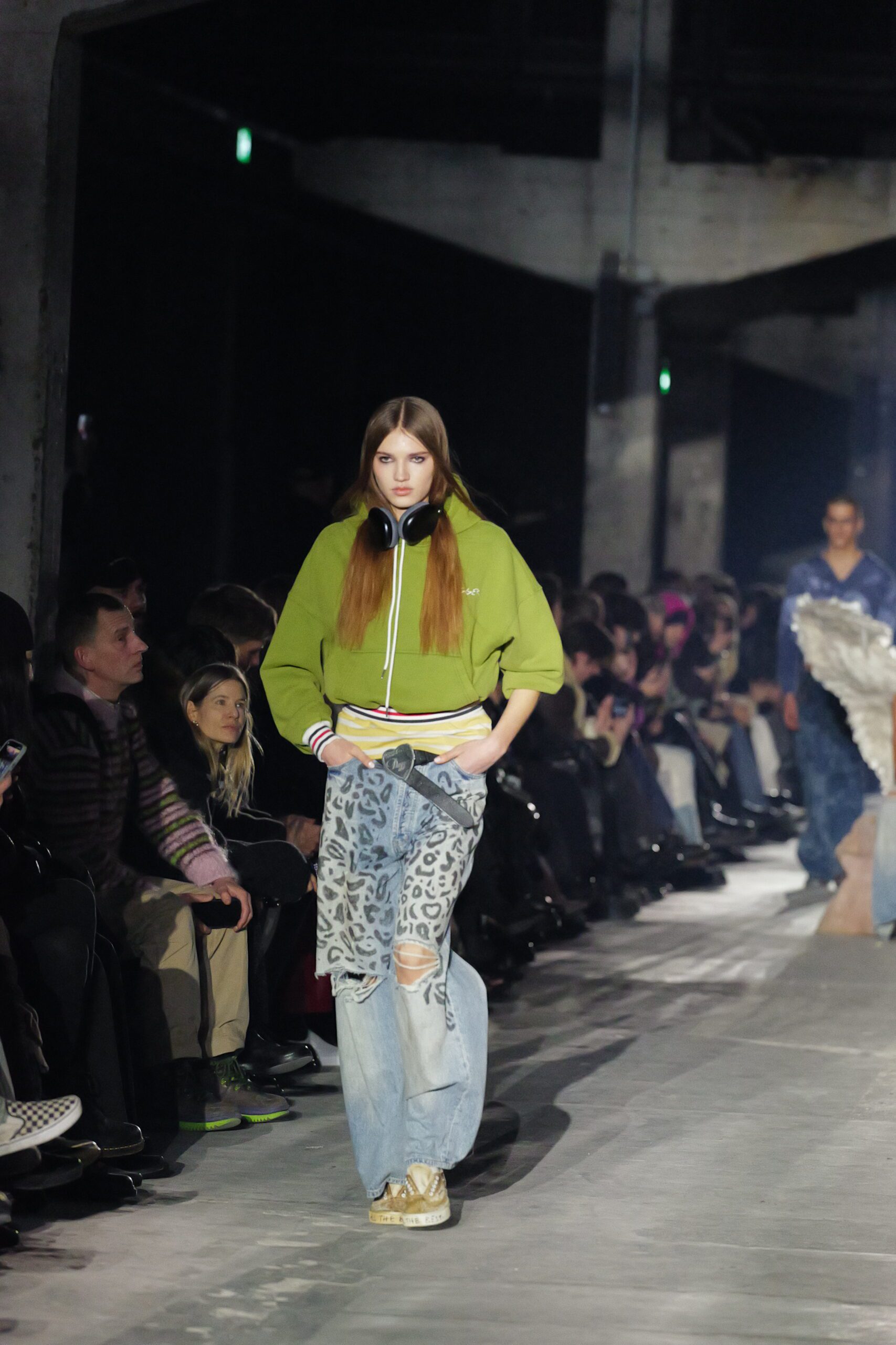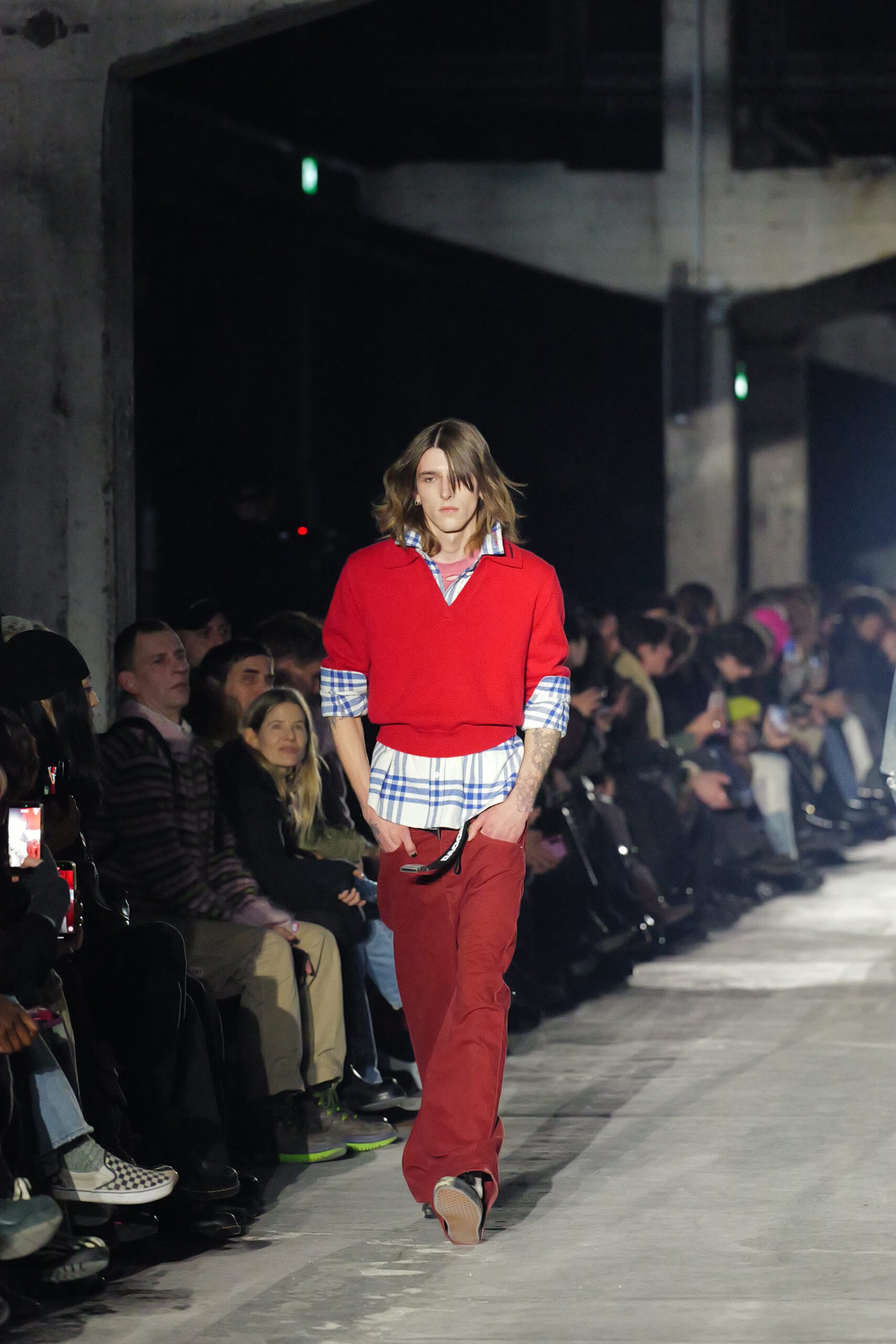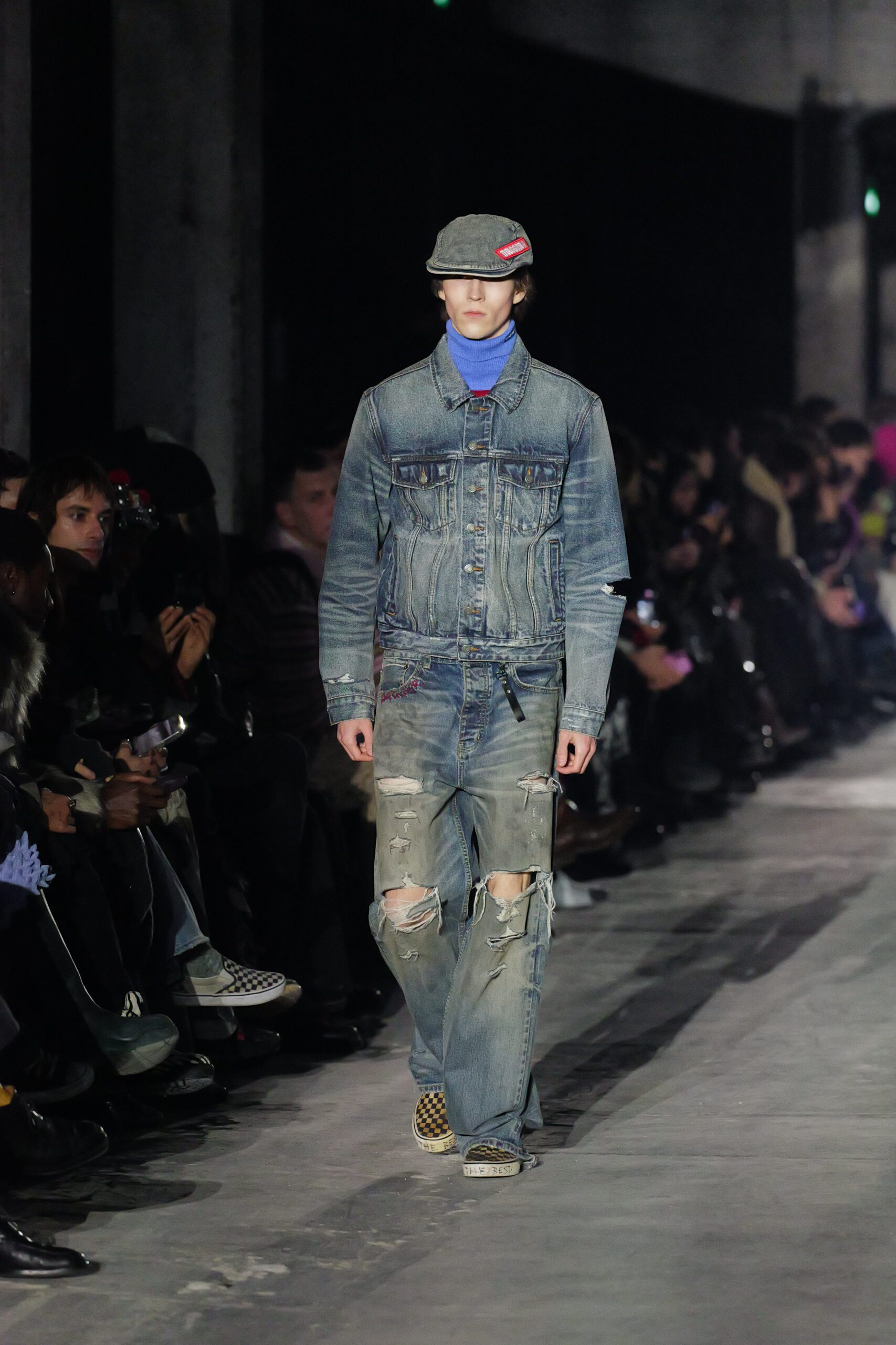Quand les lumières s’éteignent et que les premiers mannequins apparaissent, on comprend qu’il se passe quelque chose d’exceptionnel. Les silhouettes semblent taillées pour traverser les hivers : denim épais, jerseys lourds, vestes robustes. Les volumes rappellent les coupes skate du début des années 2000, tandis que certaines pièces plus structurées annoncent un désir de sophistication.