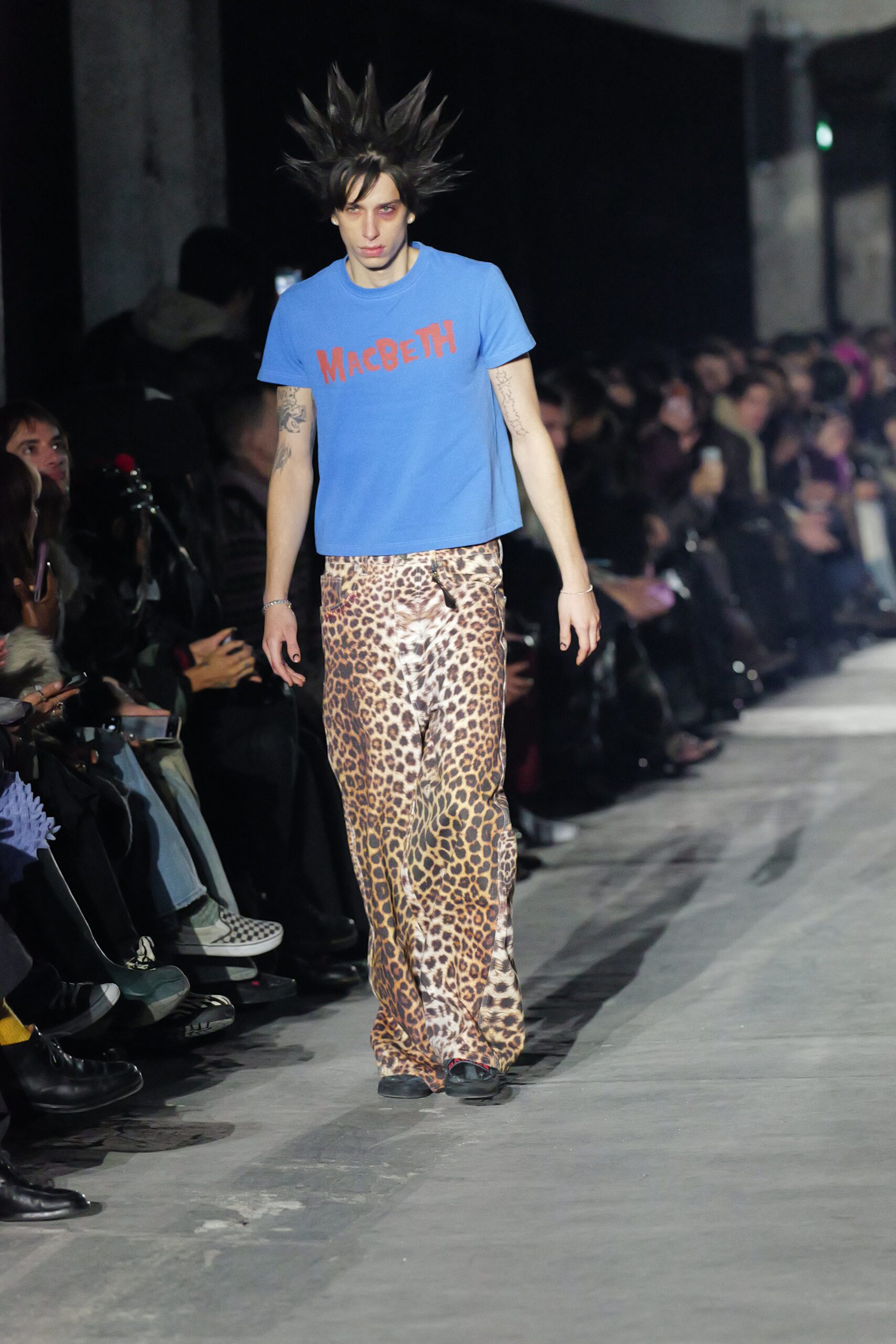 Un moment particulièrement marquant : cette mannequin aux cheveux blonds qui défile torse nu.
