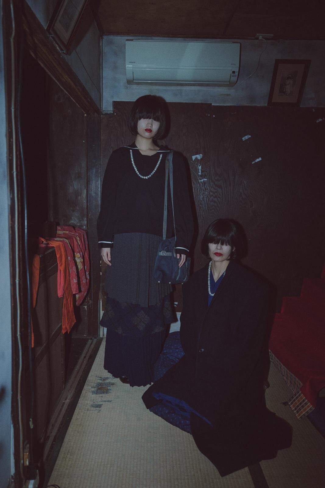 Cette saison convoque l’esprit des ères Taisho et Showa ces décennies japonaises chargées de nostalgie mélancolique. Les matières semblent usées par le temps : laine duveteuse comme portée pendant des années, tricots perforés et effilochés à l’ourlet, textures qui évoquent non pas la destruction mais le passage lent, inéluctable, poétique.