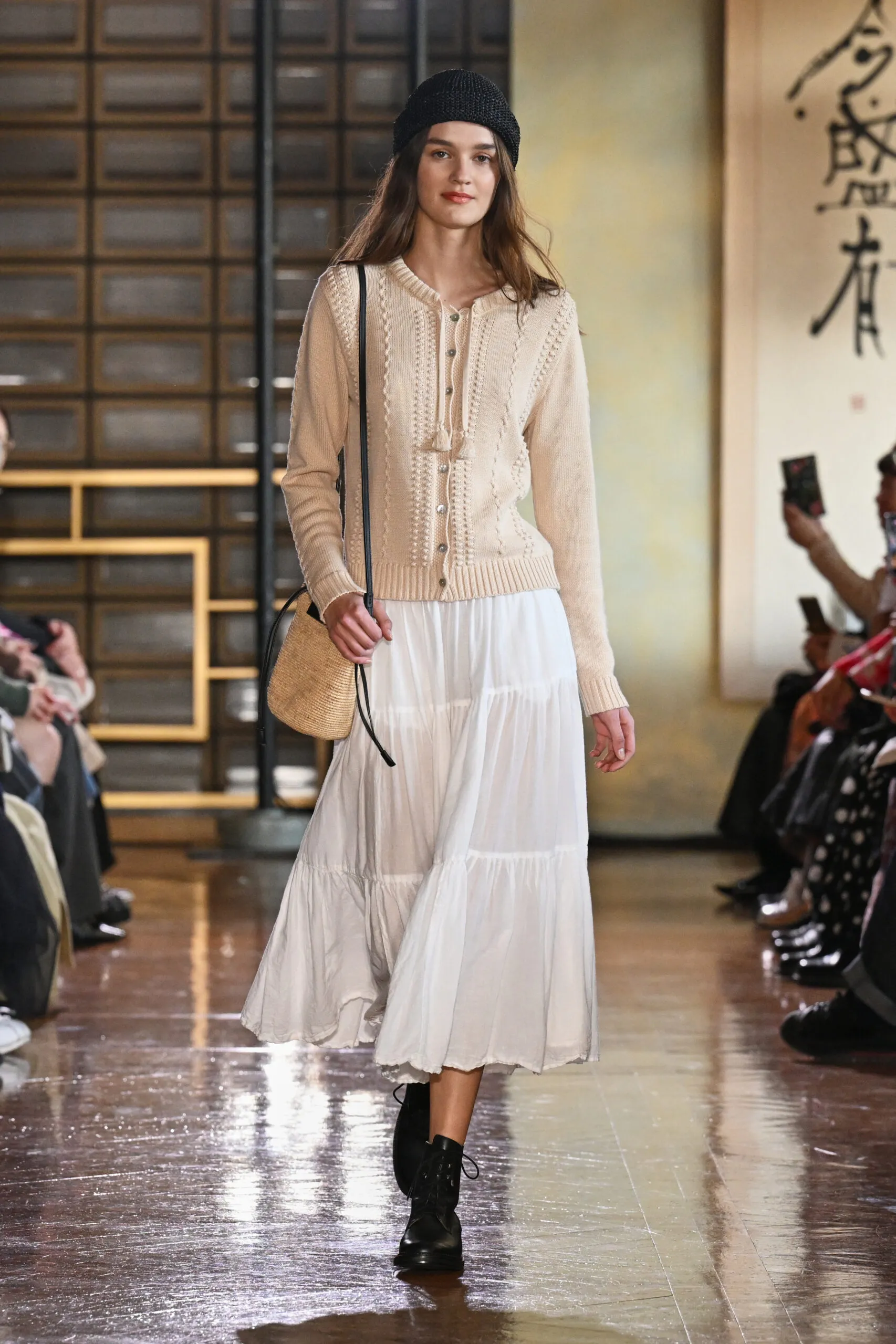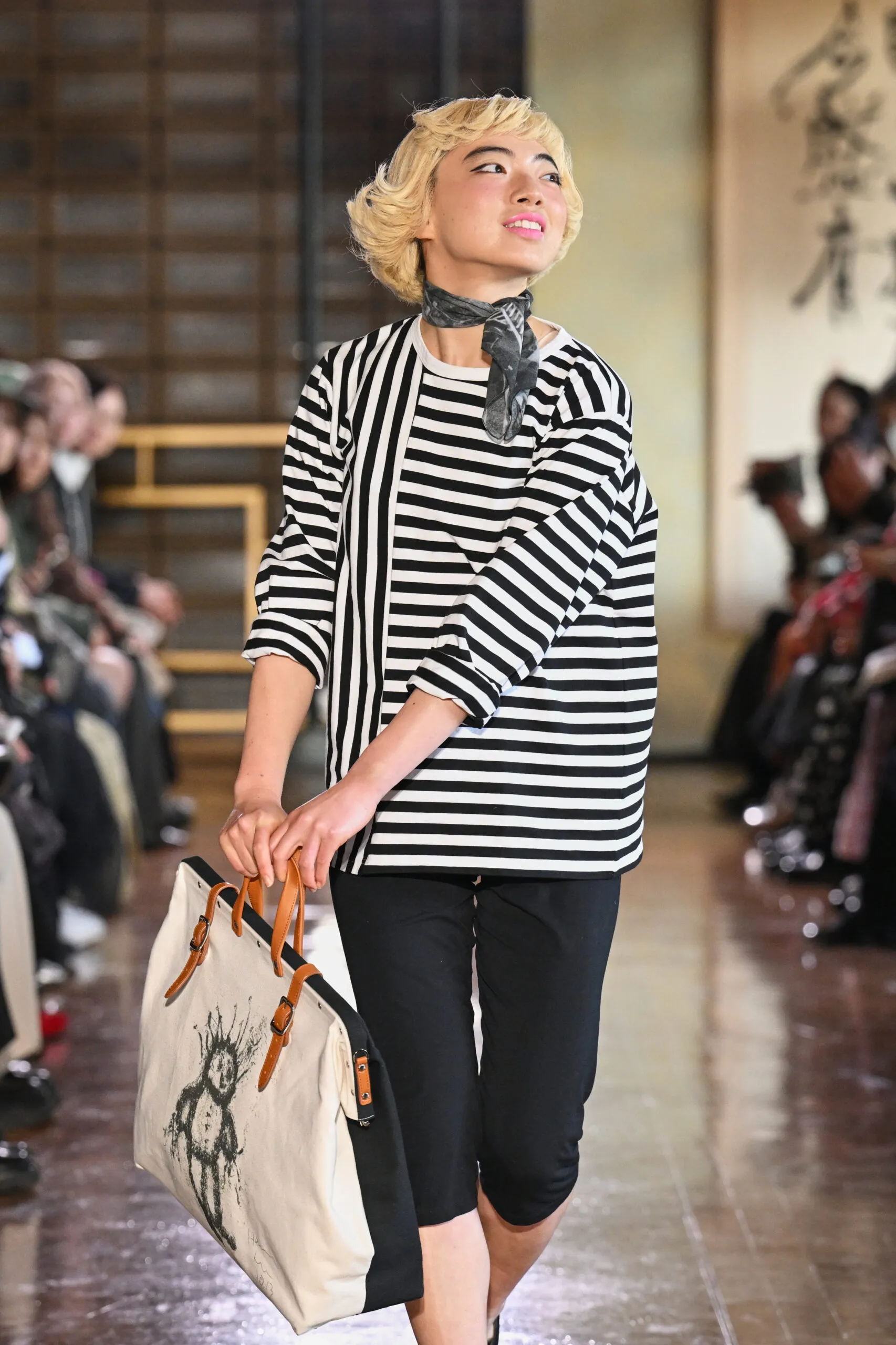 Le mardi 17 mars à 19h00 a réservé l’une des apparitions les plus attendues de la semaine : le défilé d’agnès b., dans le cadre de l’initiative « by R » de Rakuten. Fondée en 1975, la maison française revenait à Tokyo pour son premier show de défilé en près de dix ans un retour chargé de sens, à l’heure où la maison célèbre son cinquantenaire.