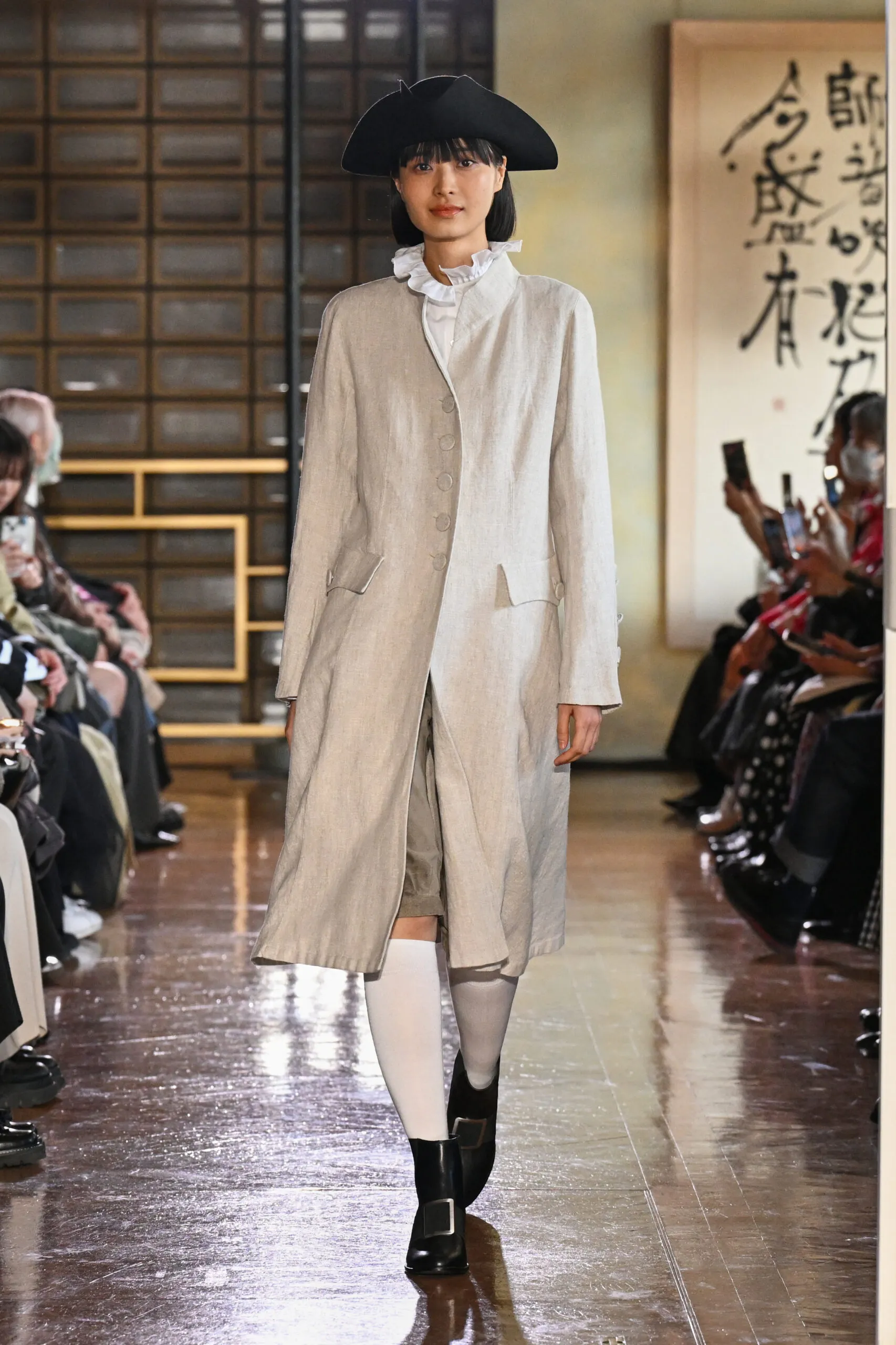 Le lundi a déployé une journée dense et plurielle. KAKAN et ANTHEM A, tous deux lauréats du Tokyo Fashion Award, ont confirmé la vitalité d’une scène émergente qui ne cherche pas à imiter les codes occidentaux mais à construire les siens. ENFÖLD et ANCELLM, figures établies du calendrier tokyoïte, ont apporté la profondeur de marques qui savent ce qu’elles veulent dire.