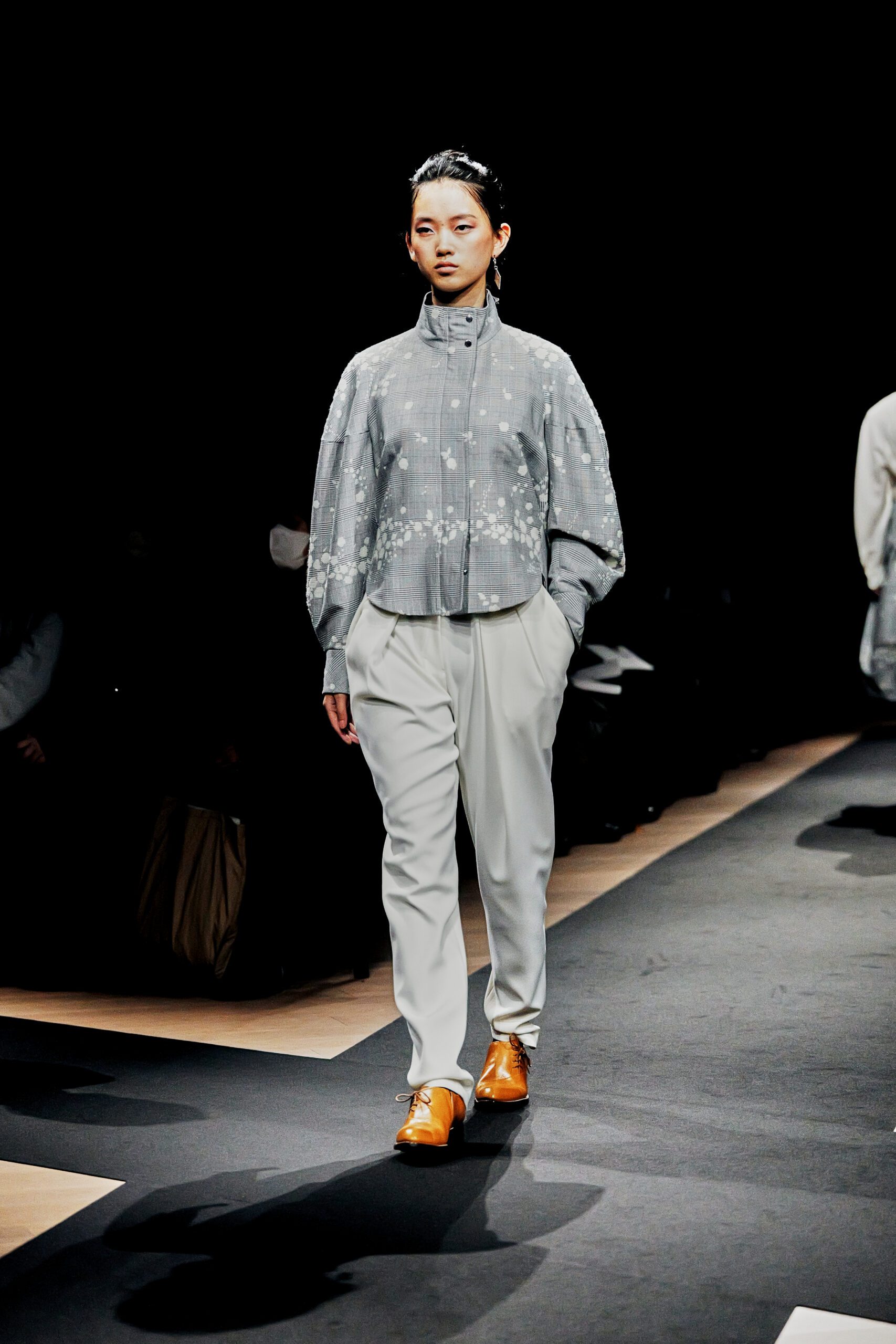 C’est précisément ce mot presence, « présence » que Norio Surikabe avait choisi comme fil conducteur de cette collection, lui qui refuse pourtant, chaque saison, de s’enfermer dans un thème. La présence, non comme une affirmation mais comme un état : l’immobilité qui vibre, le calme qui contient toute la force. Une philosophie textile aussi bien qu’existentielle.