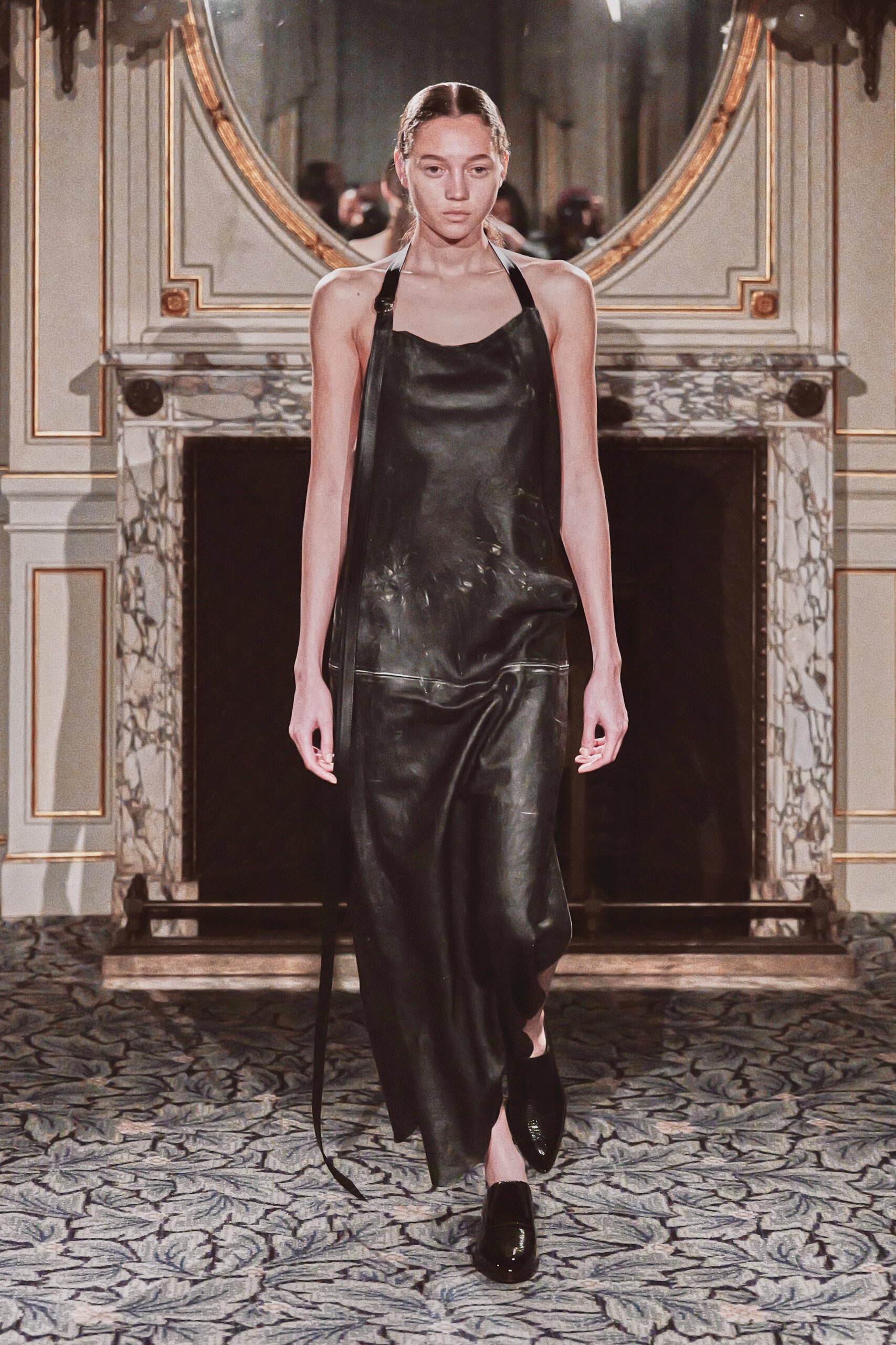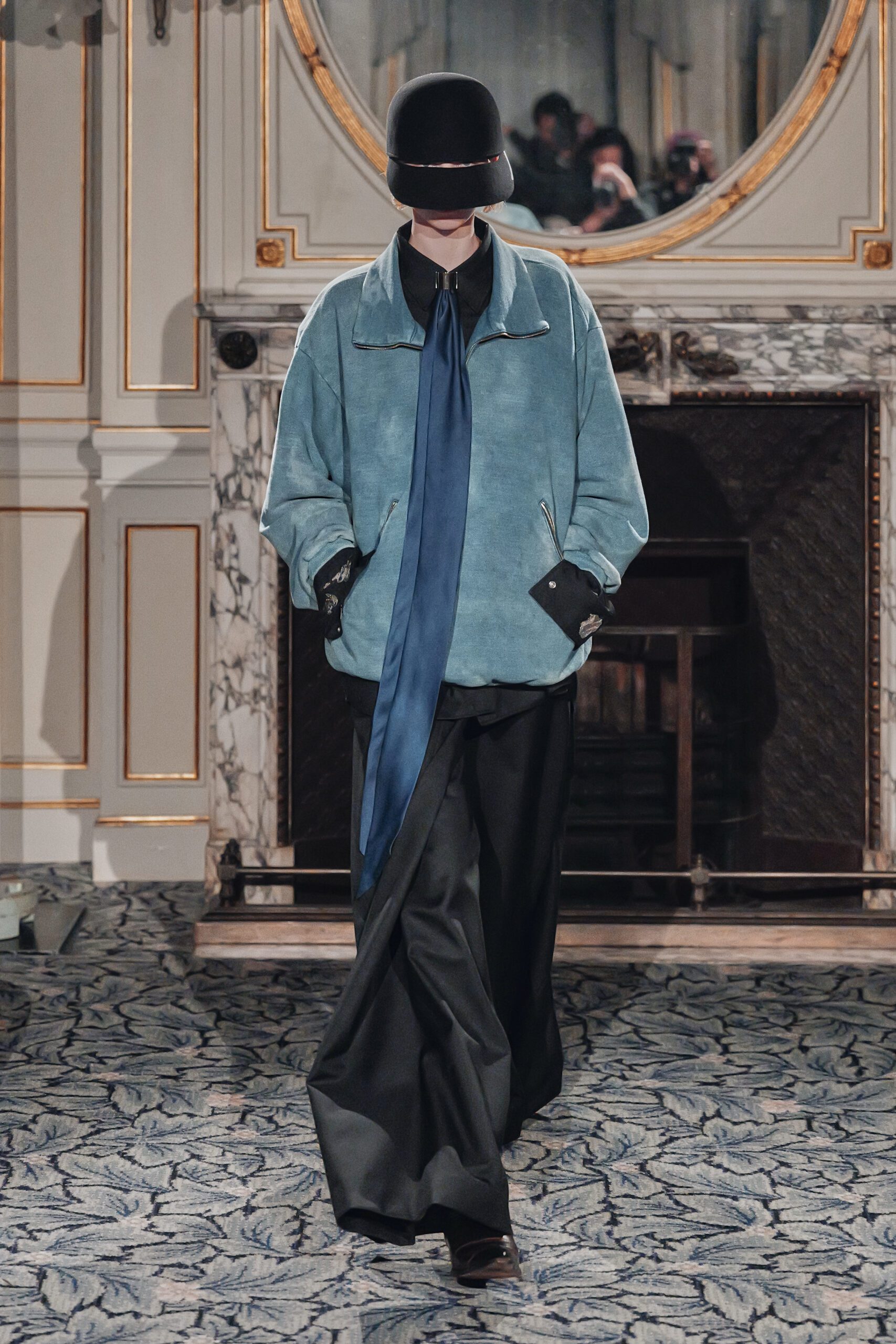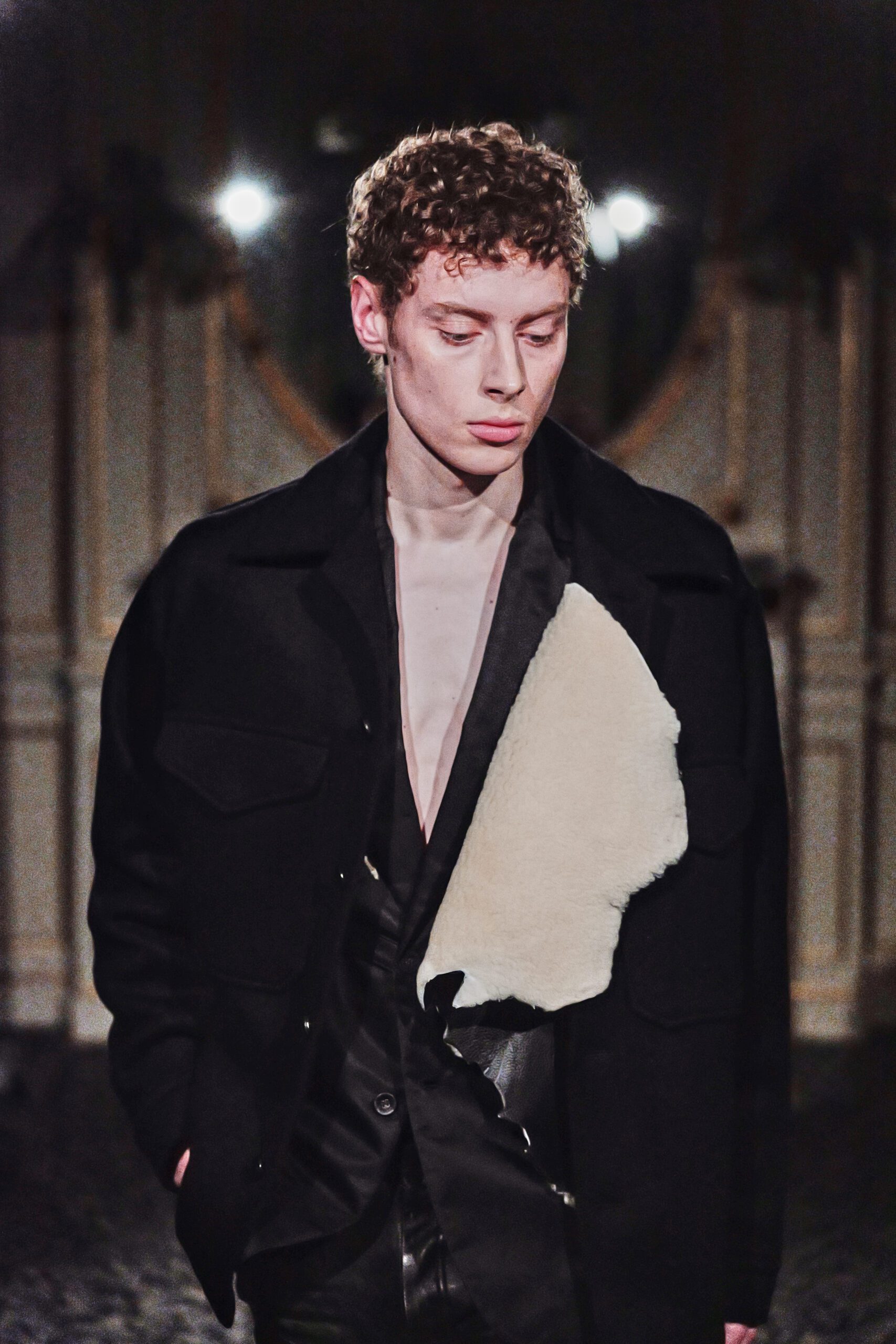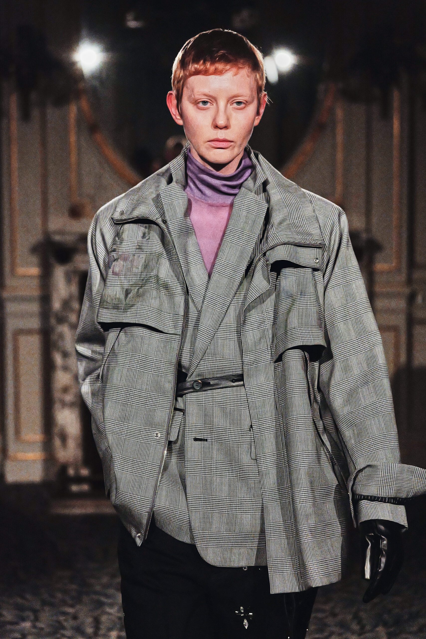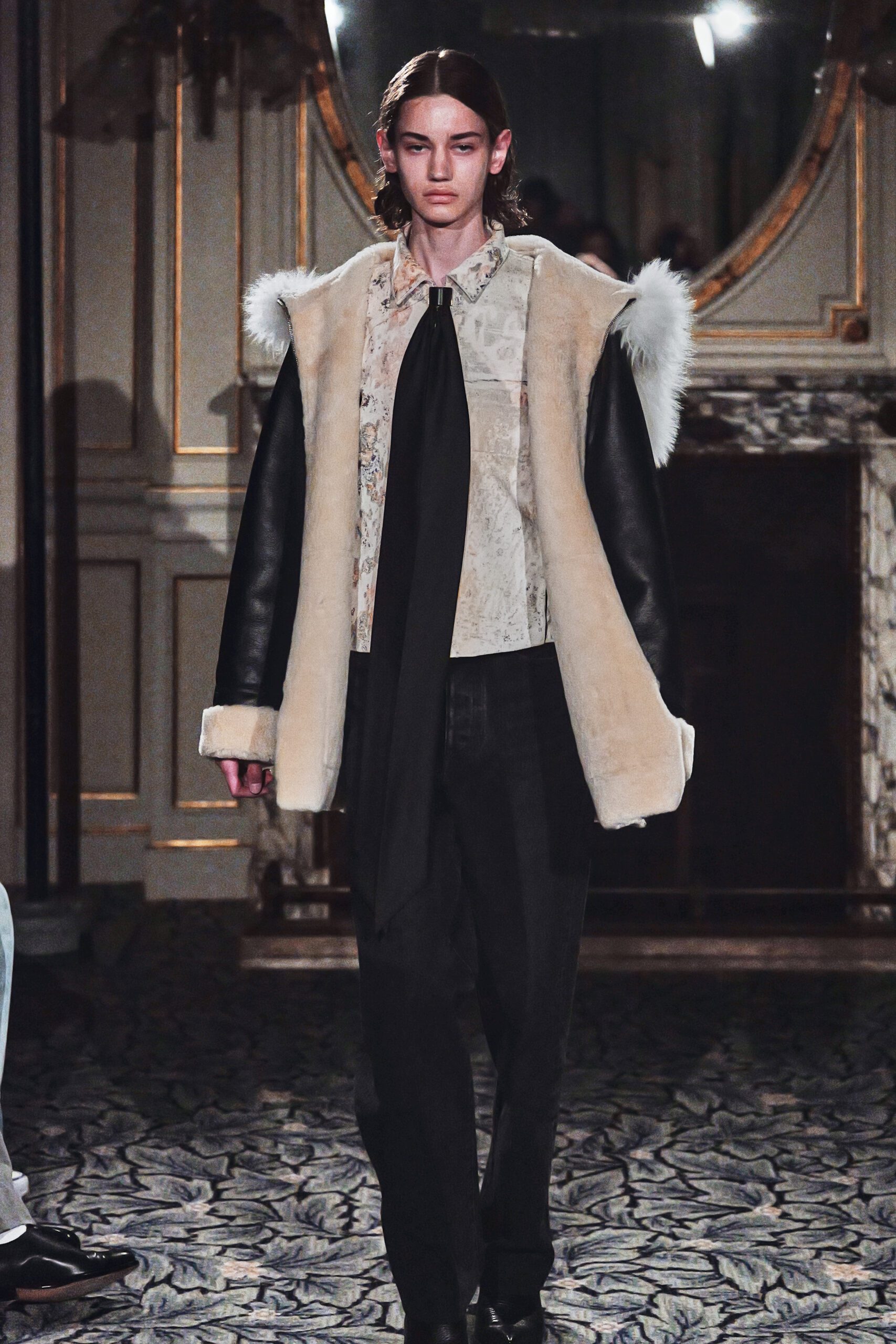 Du côté des hommes, la veste sans col ornée de bijoux restera l’une de mes images de la saison. L’impression à la feuille d’argent, les effets de délavage intégrés comme autant d’années vécues c’est une pièce qui raconte une histoire avant même que son porteur ait prononcé un mot.