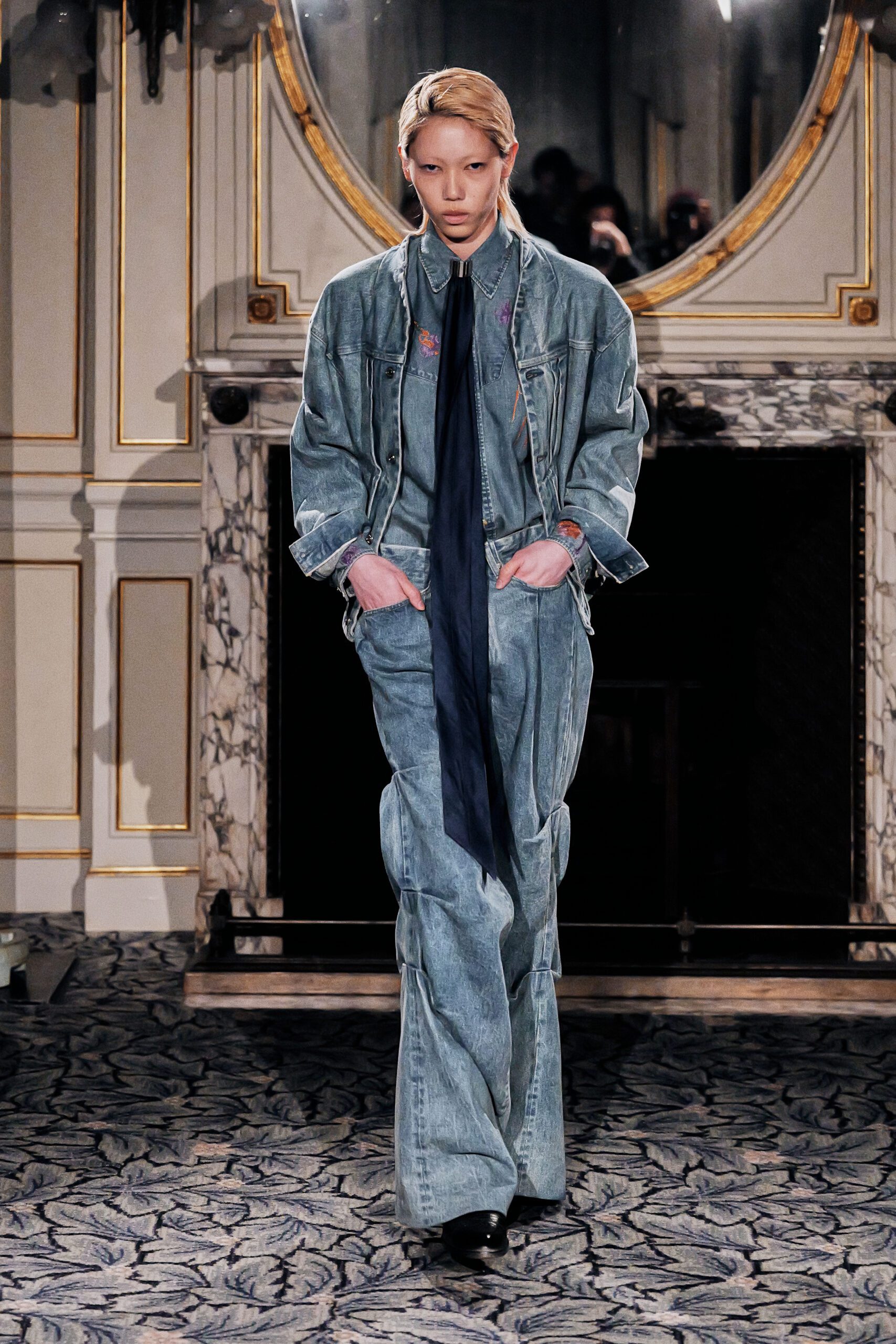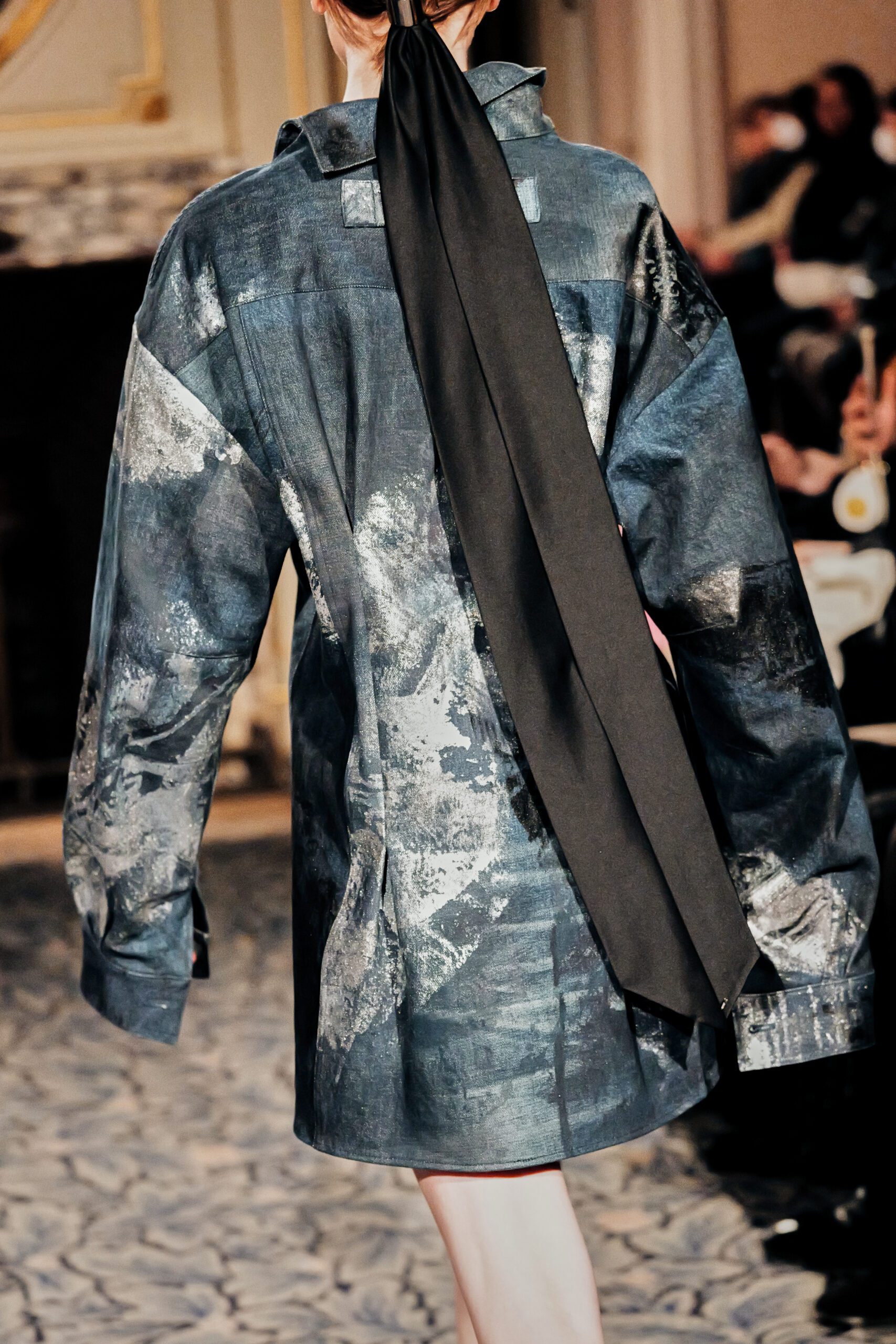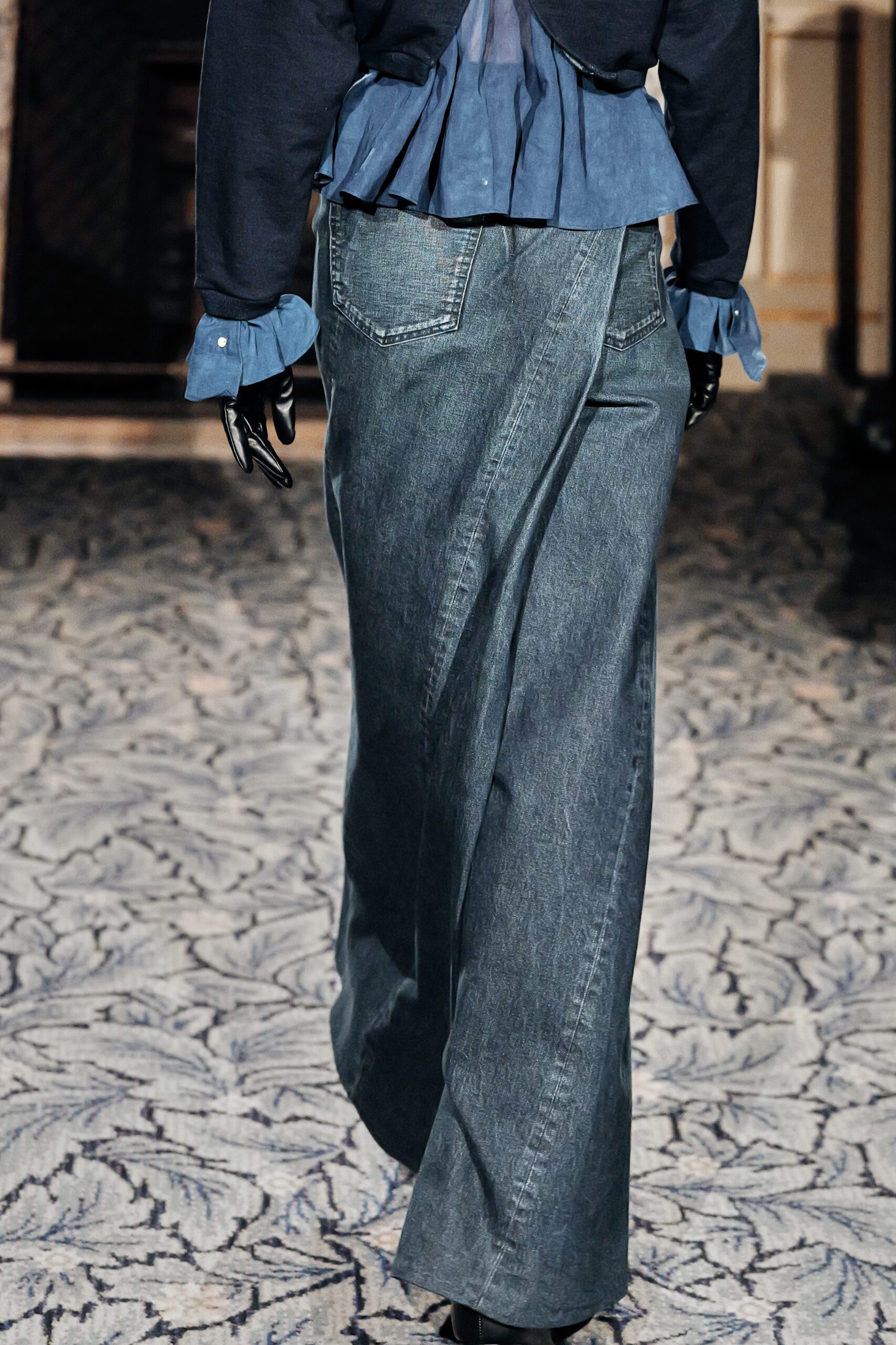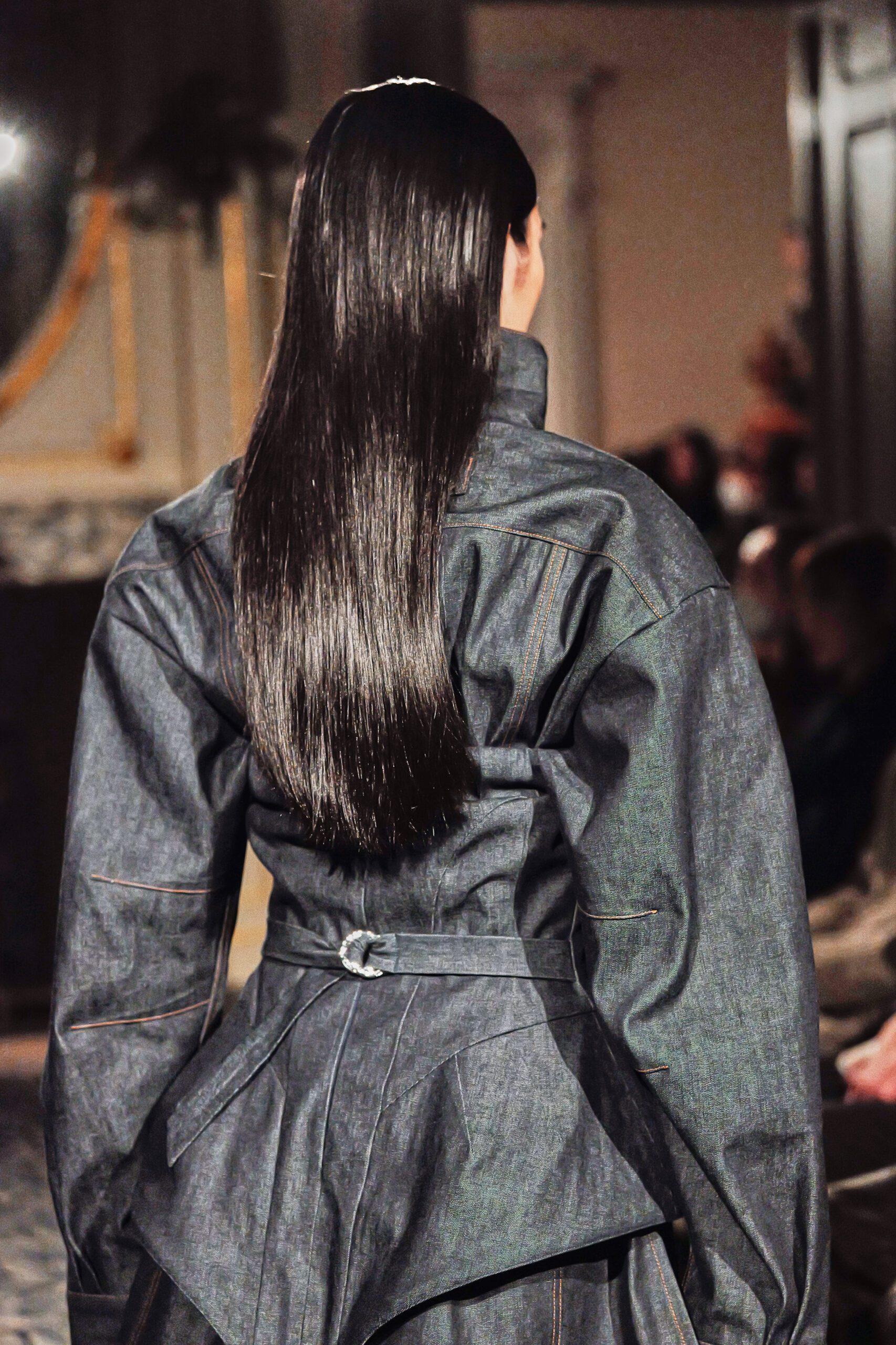 Ce qui m’a frappée, c’est la maîtrise du paradoxe. Élever le denim matière du quotidien, de l’usure, de la rue jusqu’à l’extraordinaire, sans jamais le dénaturer.