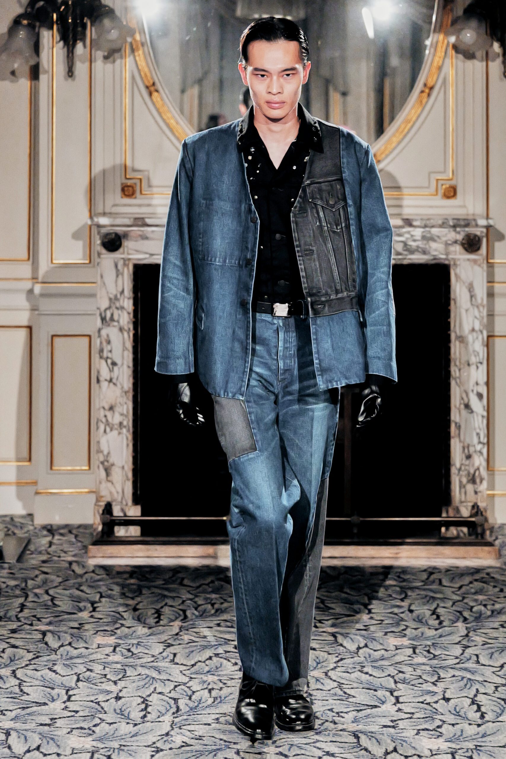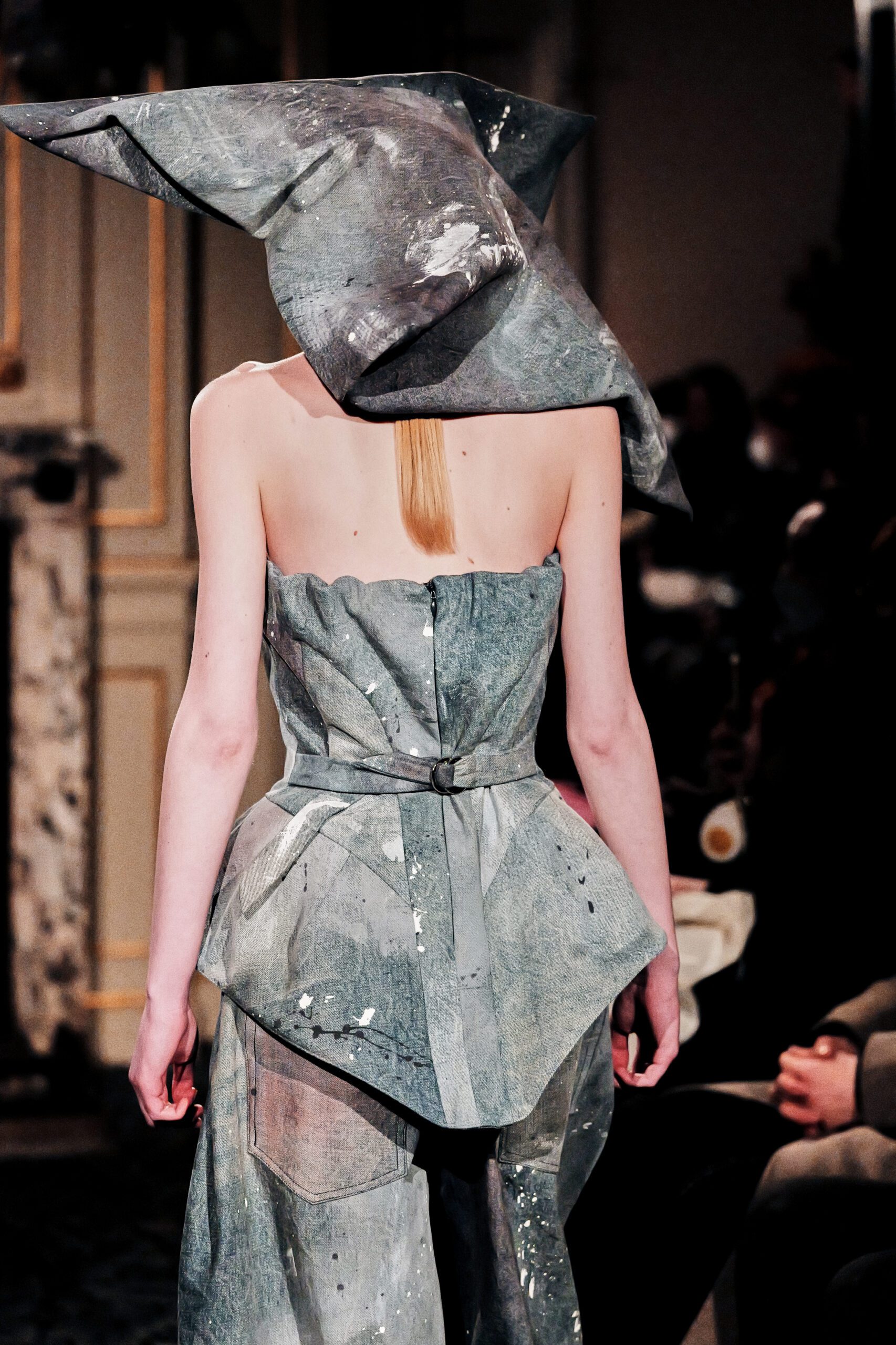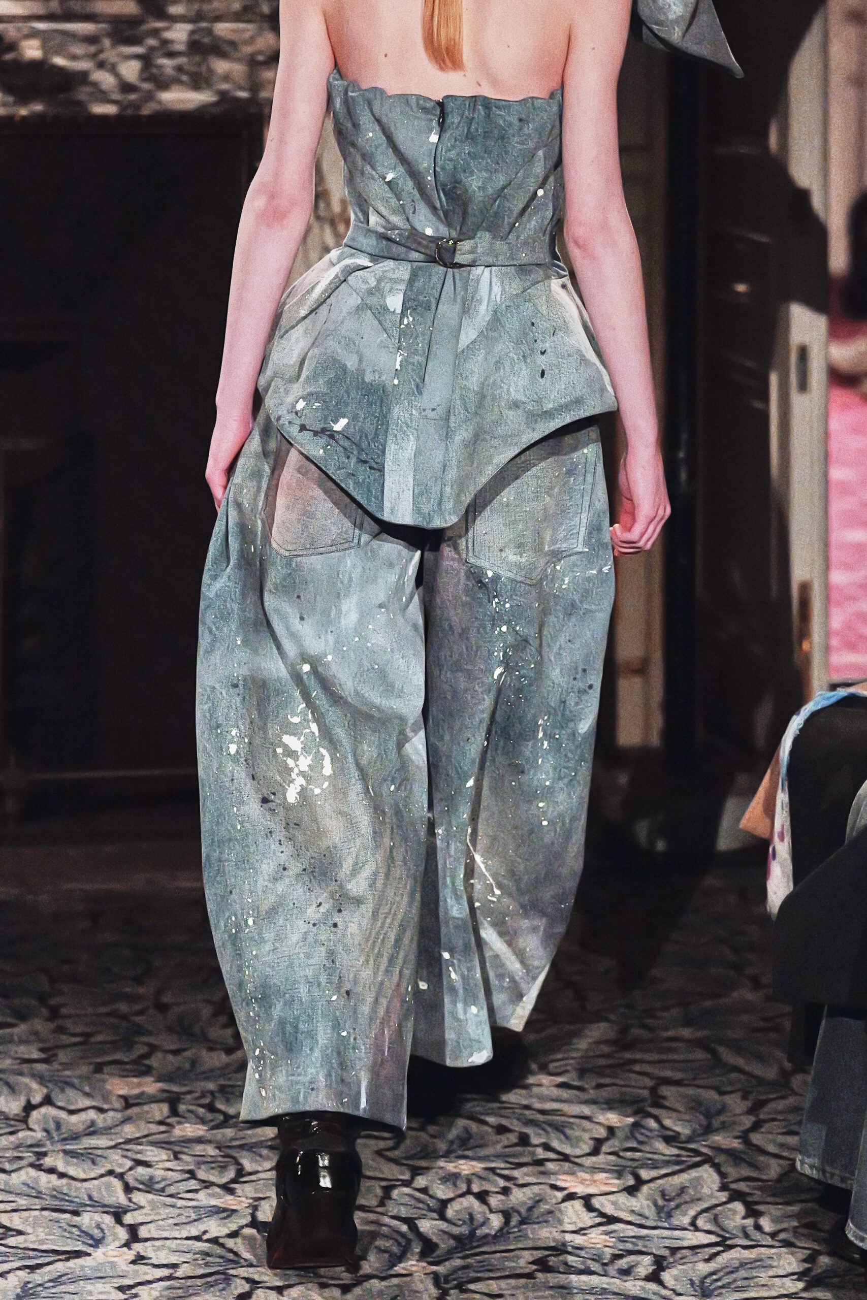 Ce qui m’a frappée, c’est la maîtrise du paradoxe. Élever le denim matière du quotidien, de l’usure, de la rue jusqu’à l’extraordinaire, sans jamais le dénaturer.