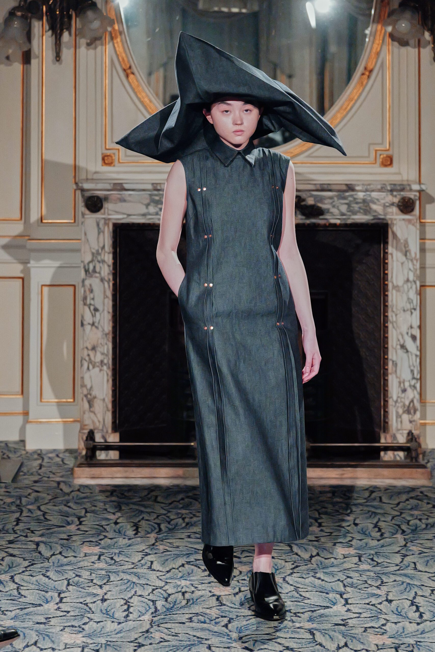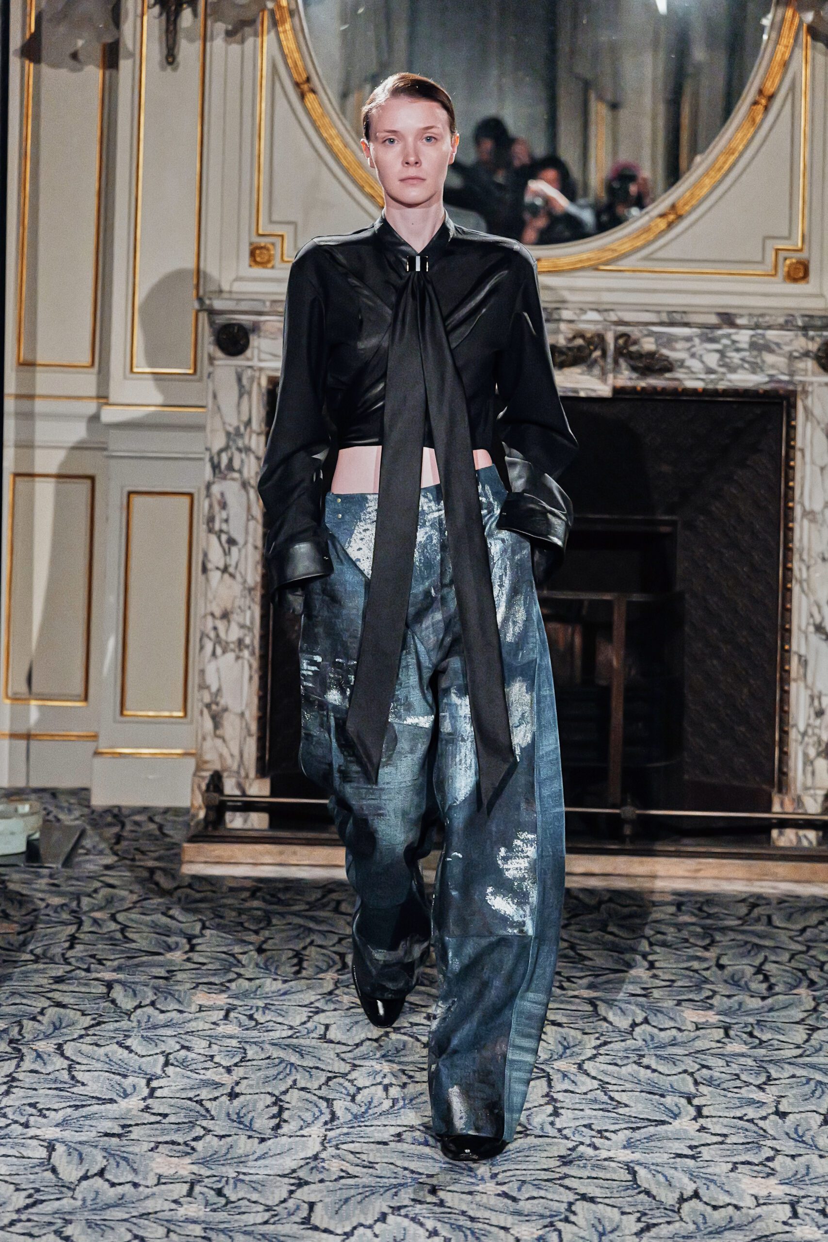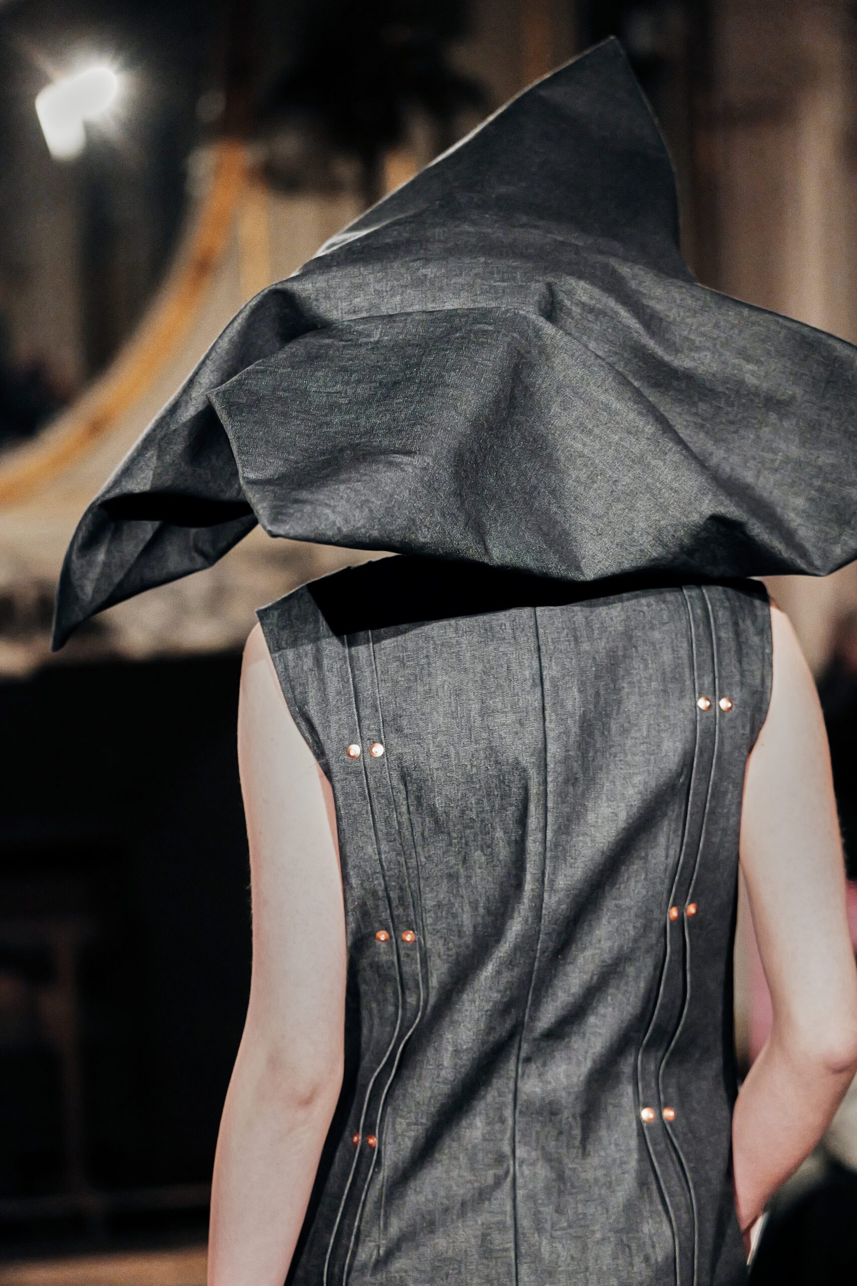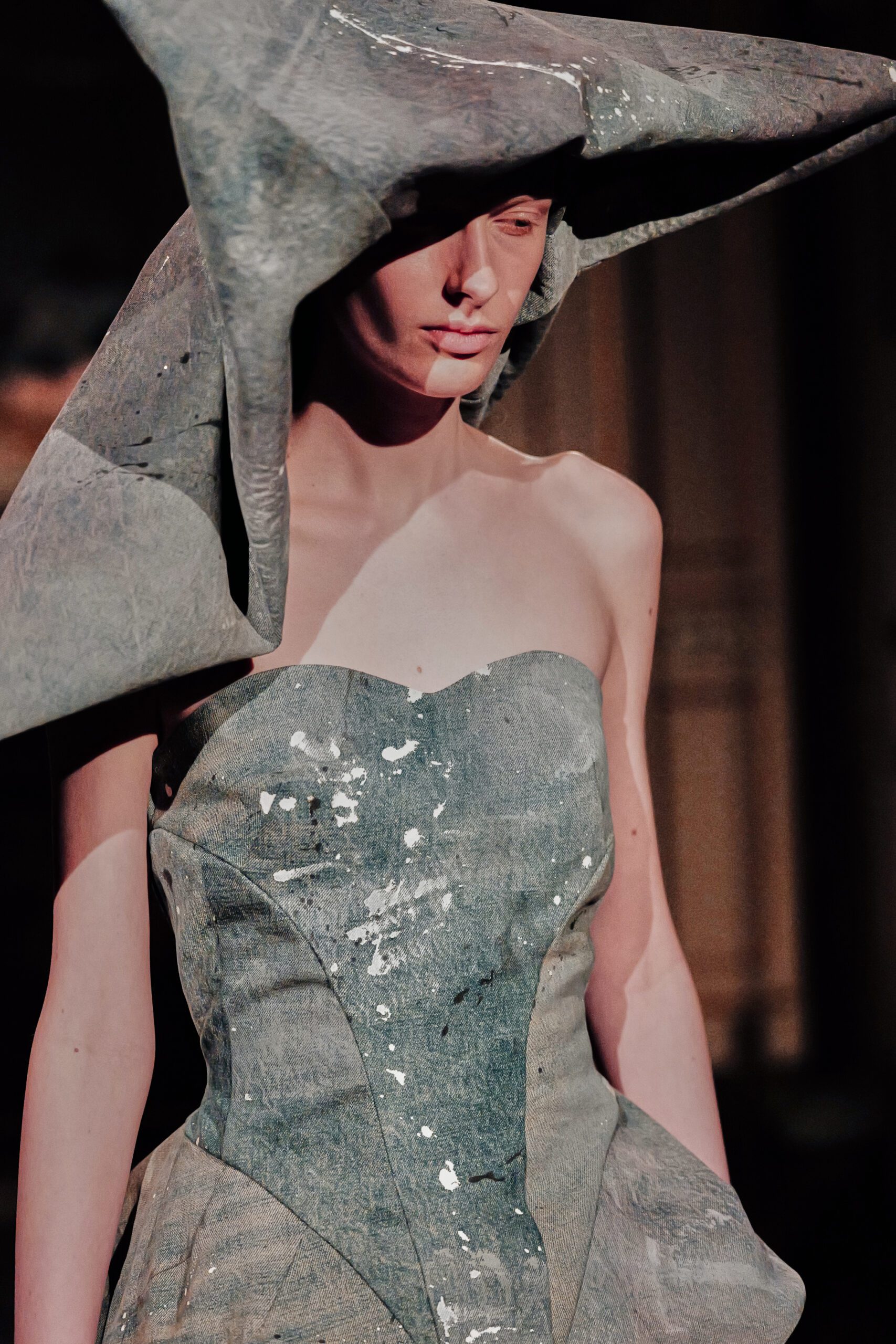 Ce qui m’a frappée, c’est la maîtrise du paradoxe. Élever le denim matière du quotidien, de l’usure, de la rue jusqu’à l’extraordinaire, sans jamais le dénaturer.