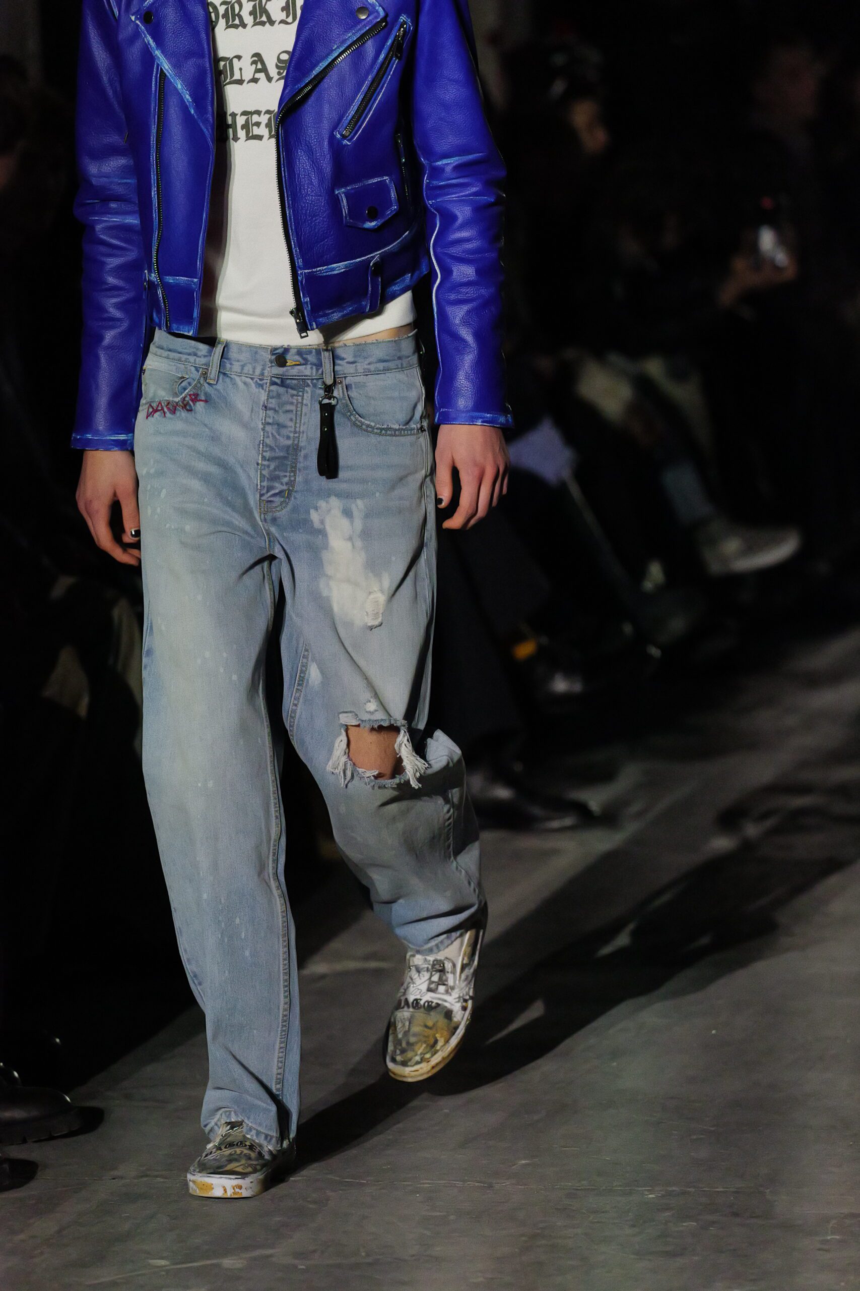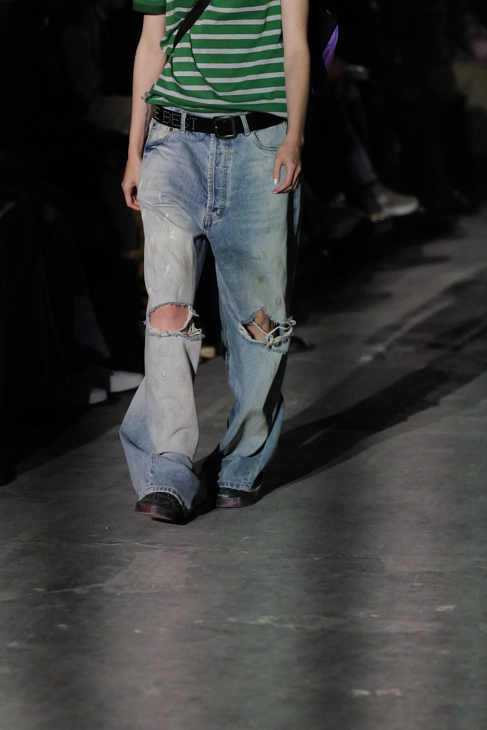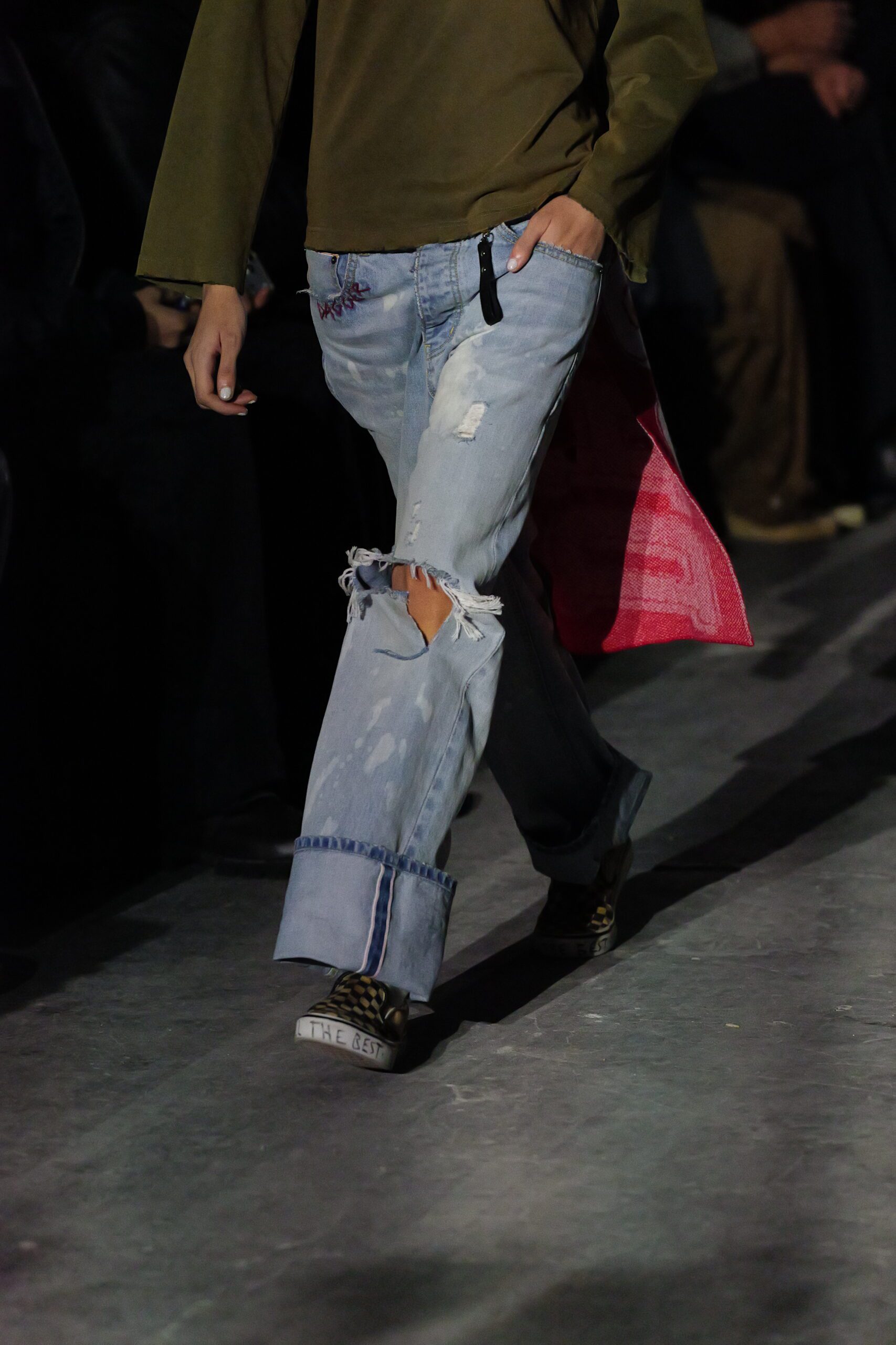 Quand les lumières s’éteignent et que les premiers mannequins apparaissent, on comprend qu’il se passe quelque chose d’exceptionnel. Les silhouettes semblent taillées pour traverser les hivers : denim épais, jerseys lourds, vestes robustes. Les volumes rappellent les coupes skate du début des années 2000, tandis que certaines pièces plus structurées annoncent un désir de sophistication.