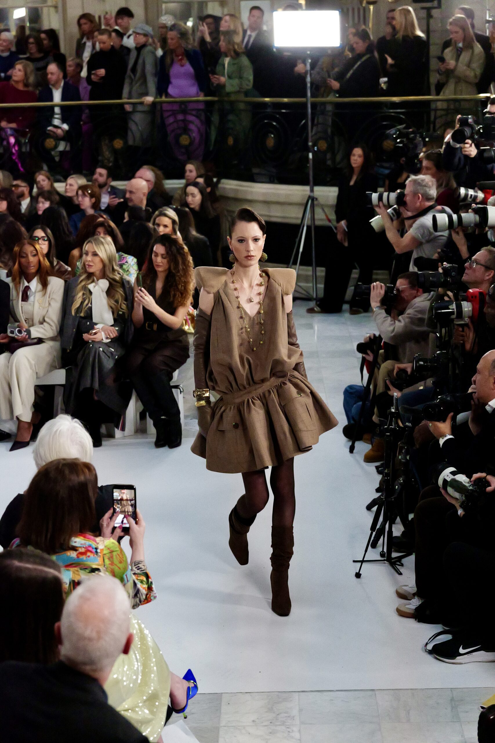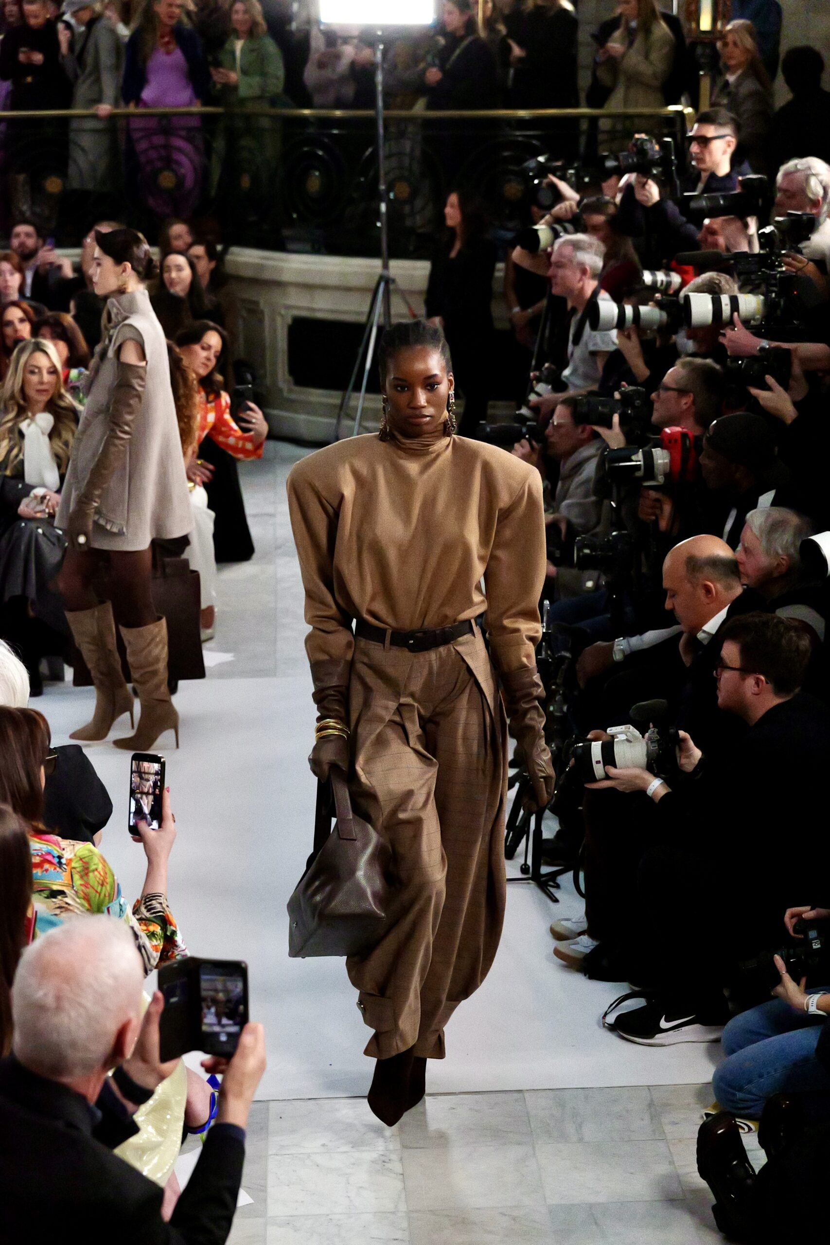 En choisissant de revenir au Palm Court du Waldorf après y avoir présenté la SS25 puis la SS26, la maison affirme une continuité spatiale là où tant d’autres labels cherchent chaque saison le décor spectaculaire. Ce choix de stabilité crée un repère sensoriel durable pour la presse et les acheteurs : on identifie immédiatement la « scène Costelloe », ce qui renforce la lisibilité de la marque dans un calendrier saturé.