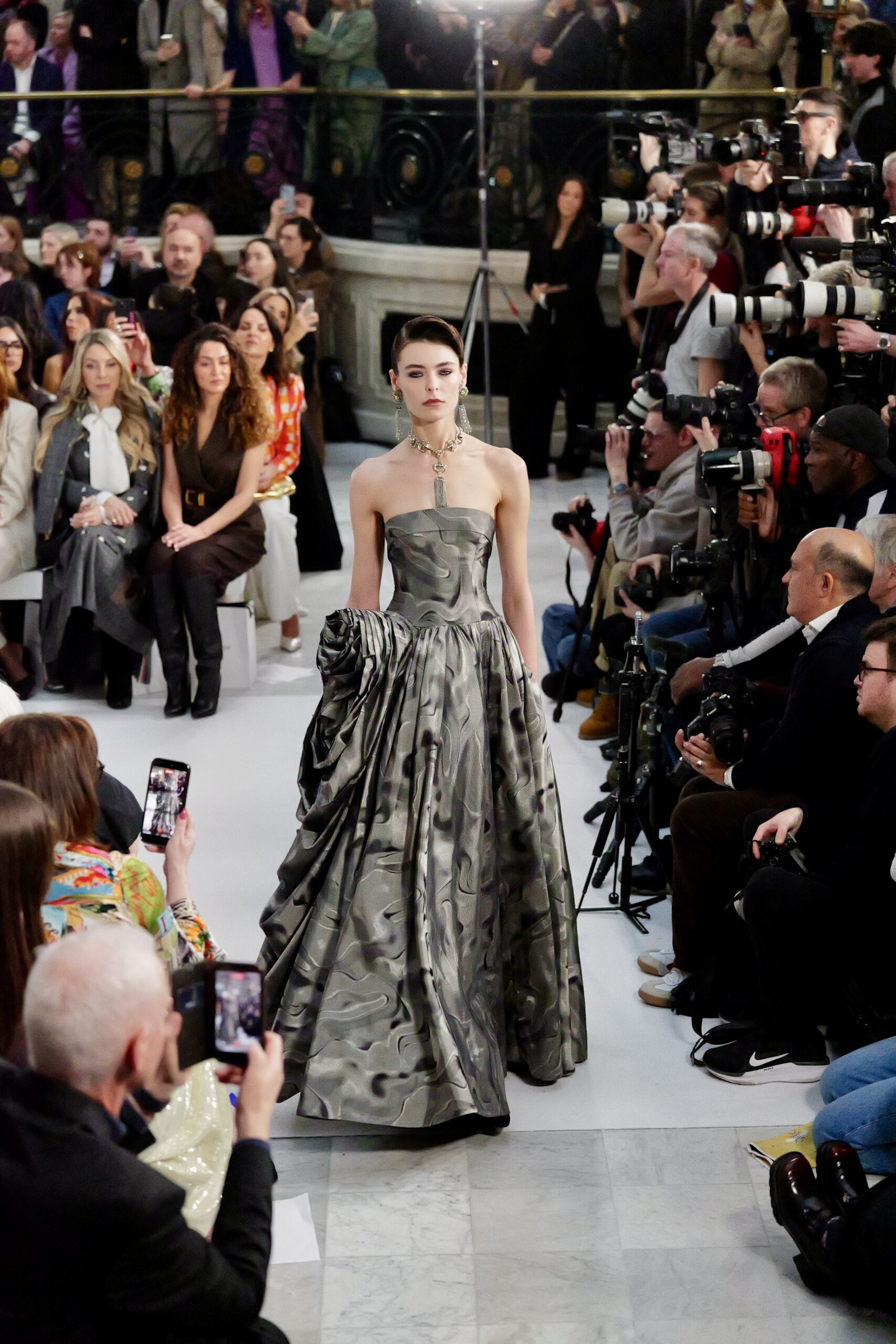 The Waldorf cesse d’être un simple cadre pour devenir une mémoire architecturale de la maison — un témoin des dernières collections présentées par Paul lui-même, et du passage de relais à William. La continuité du lieu dit ce que les mots ne suffisent pas à formuler : ici, rien ne disparaît vraiment.