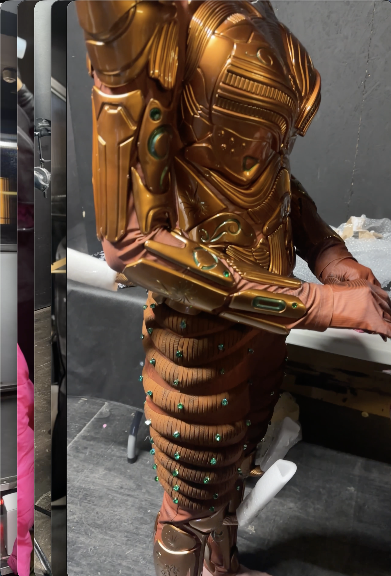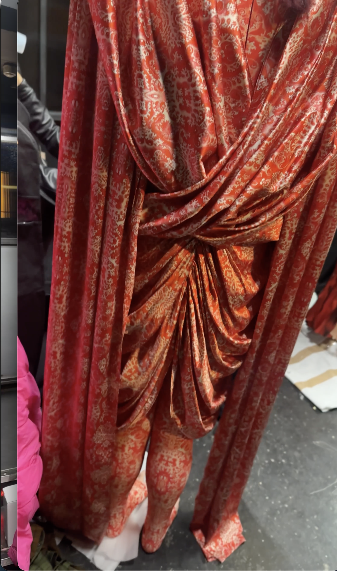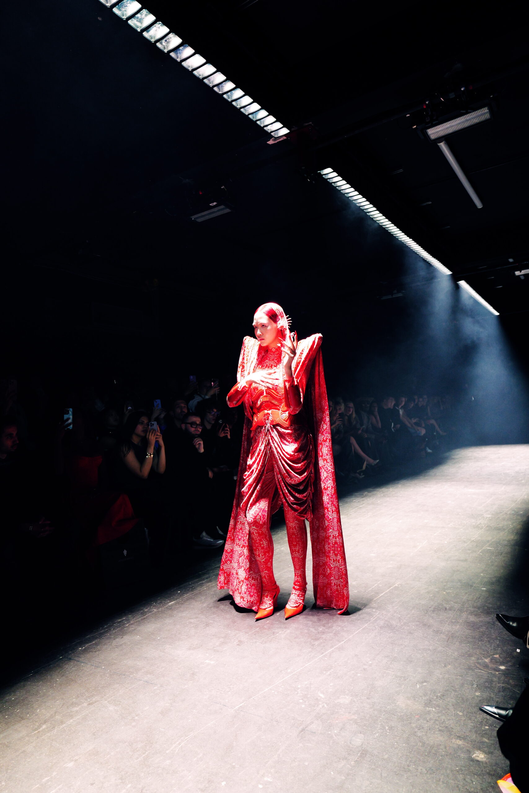 “Je suis super excité et tellement heureux de pouvoir partager ce moment avec vous,” nous lance-t-il en ajustant une des pièces encore accrochées au portant. Autour de nous, des mannequins retirent ces sculptures textiles qui ont fasciné le public quelques minutes plus tôt.