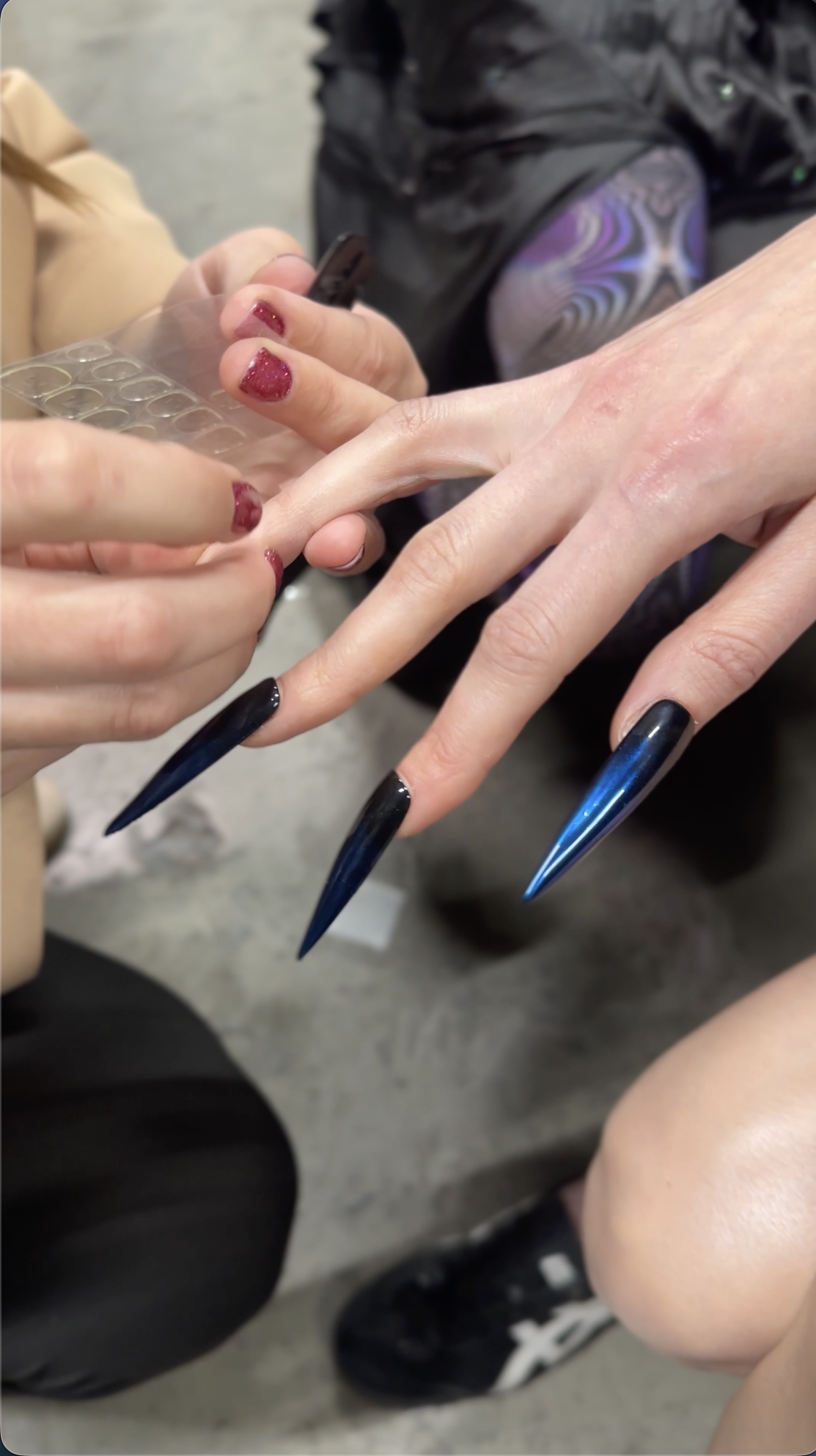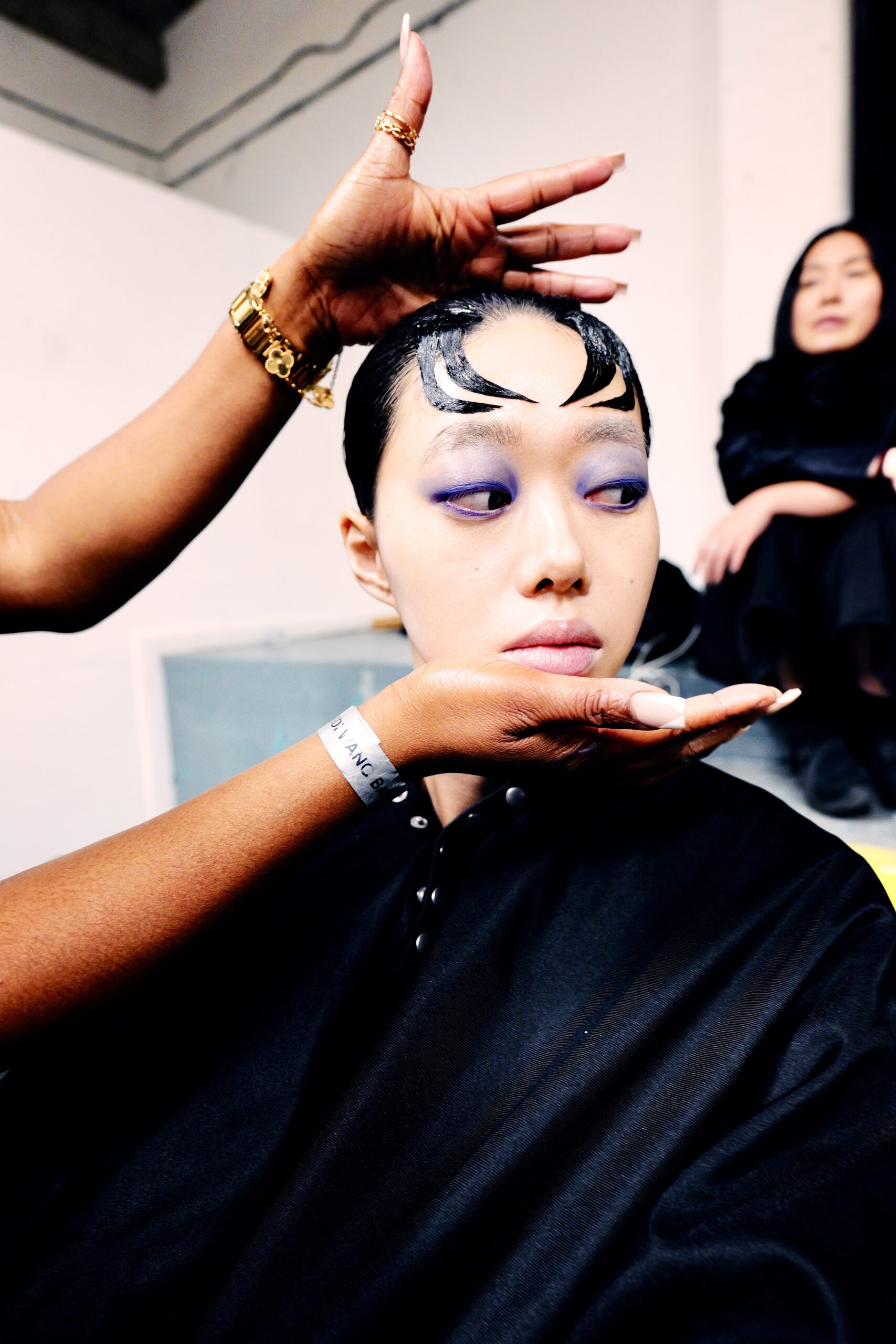 Backstage, Wang développe sa vision cosmique de la mode. “Ce n’est pas seulement le corps cosmique, c’est aussi notre collection, nos codes cosmiques. C’est quelque chose qui touche notre ressenti. Je veux que tout le monde puisse sentir cette énergie, surtout quand on touche ces thèmes cosmiques.”