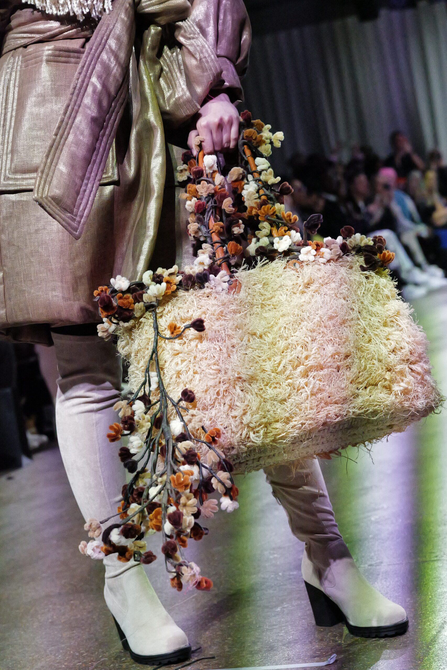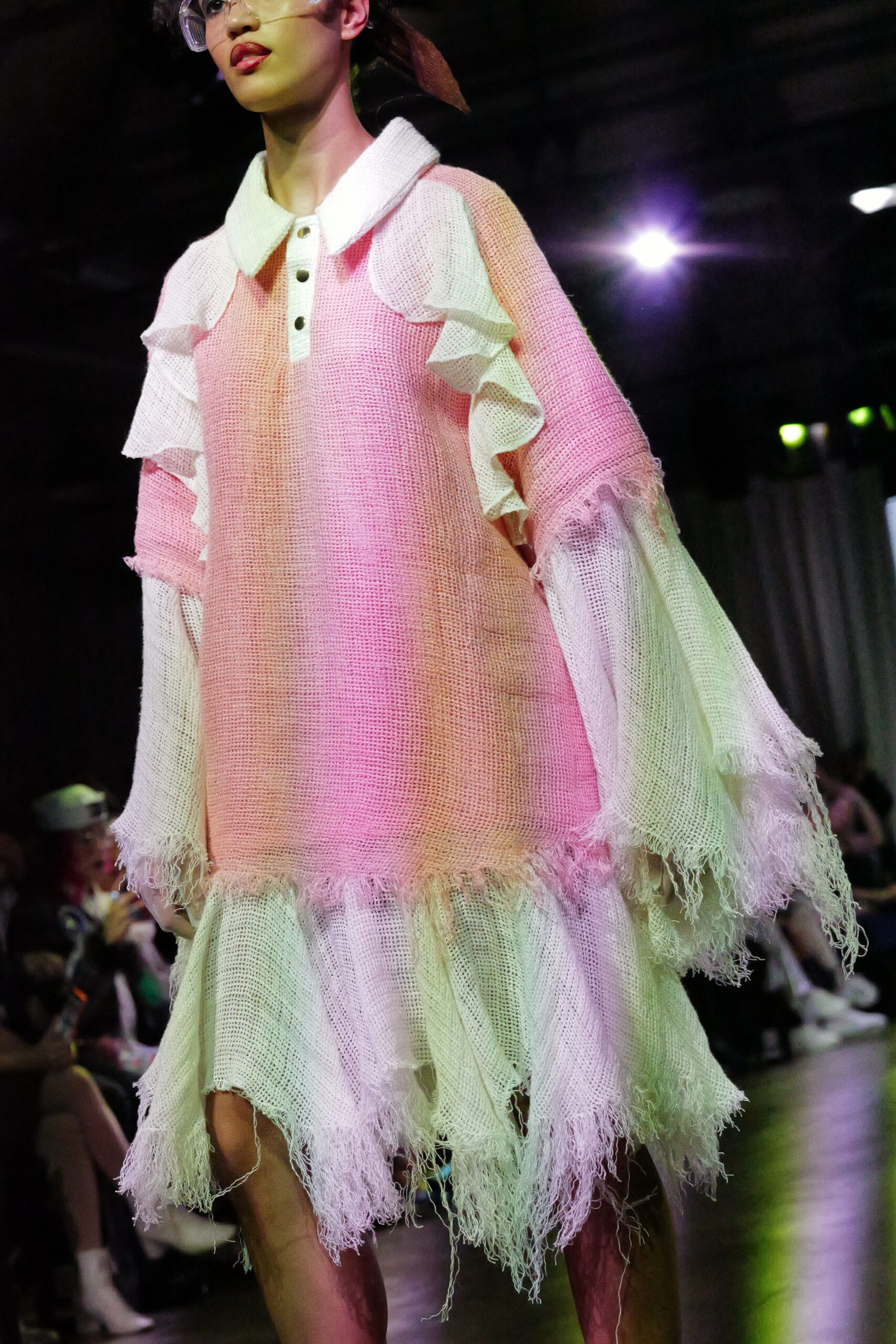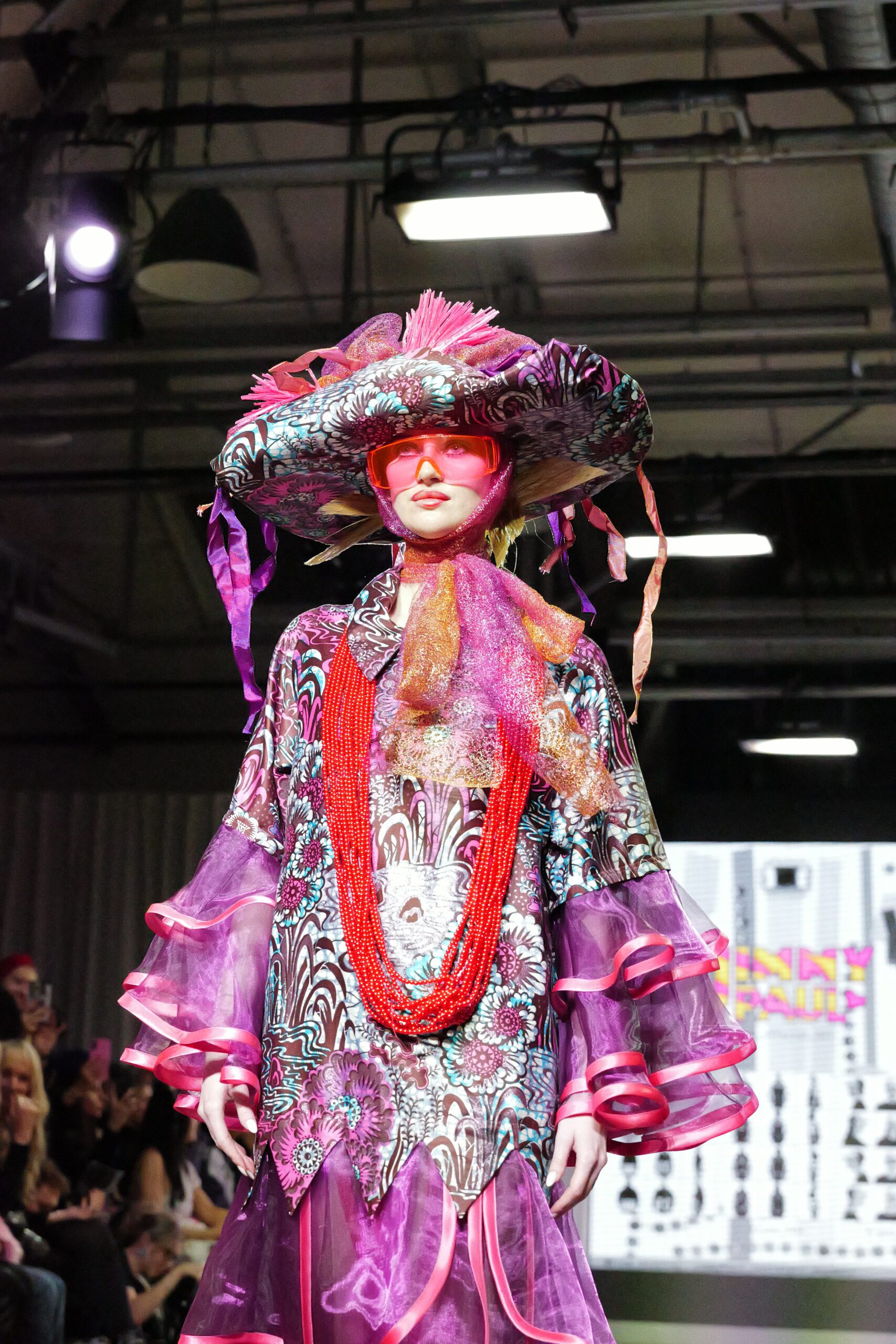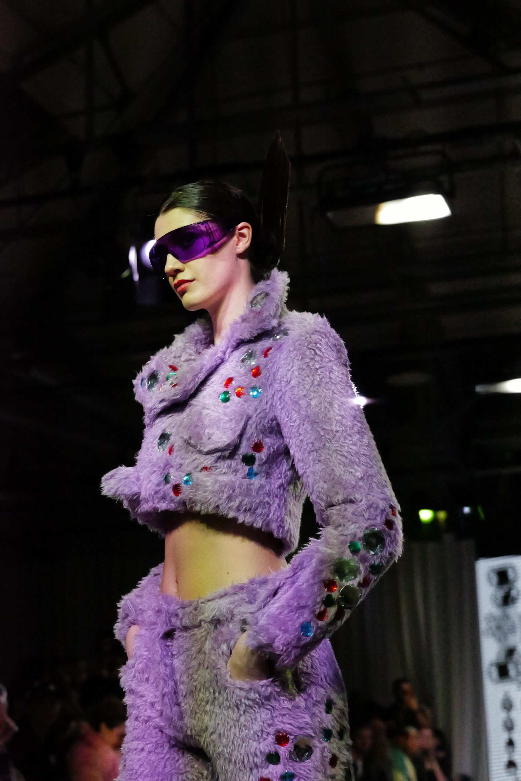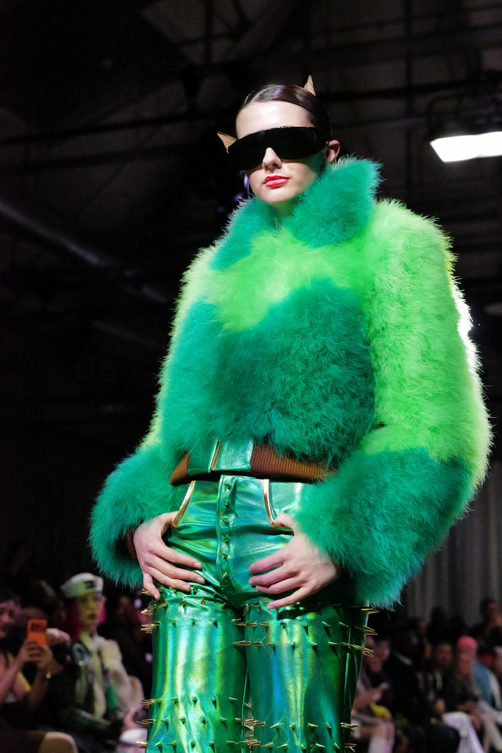 Sur le runway présenté lors de la London Fashion Week, organisée par la British Fashion Council, cela se voit dans des silhouettes qui fonctionnent comme des avatars. Un manteau arc‑en‑ciel de fausse fourrure, gonflé comme un nuage, pourrait être lu comme la matérialisation d’un compagnon de type Fée, à la fois bouclier et doudou. À l’inverse, une mini‑robe en sequins lips, associée à un chapeau peluche démesuré, convoque une énergie plus insolente, presque club kid : la joie d’oser être « trop », comme un Pokémon qui assume pleinement son caractère.
