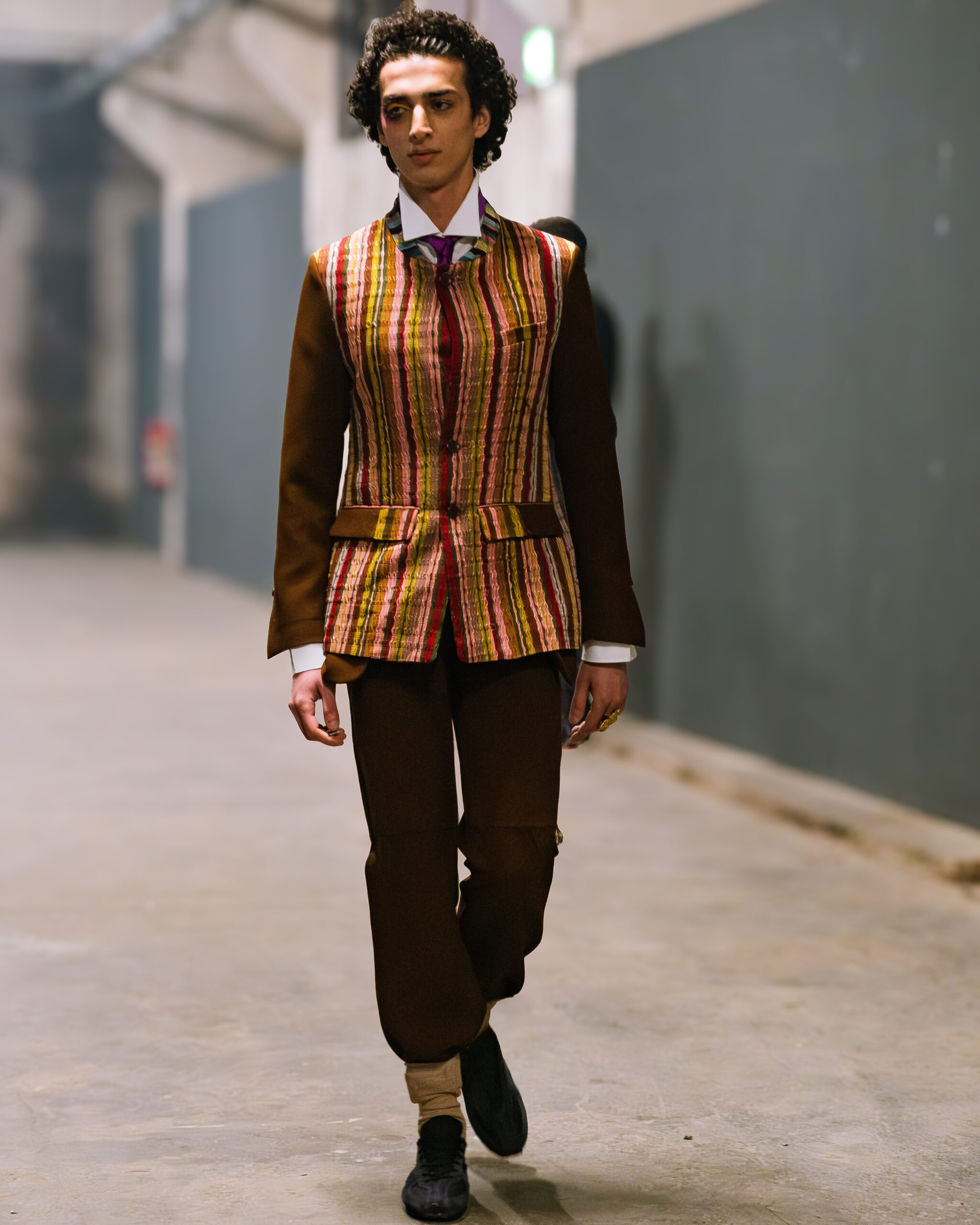 Après le défilé, le créateur arrive encore chargé de cette énergie de salle. Il sourit, presque surpris lui-même de ce qu’il vient de transmettre :