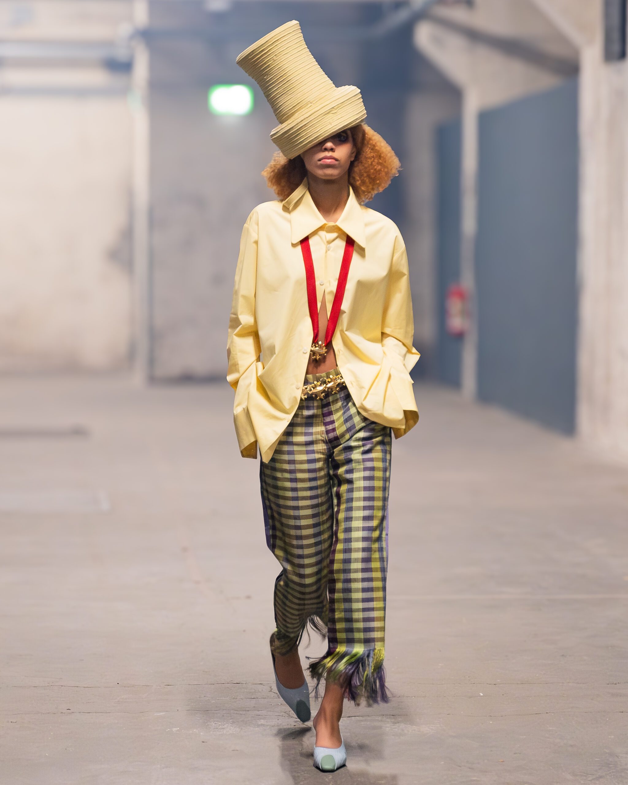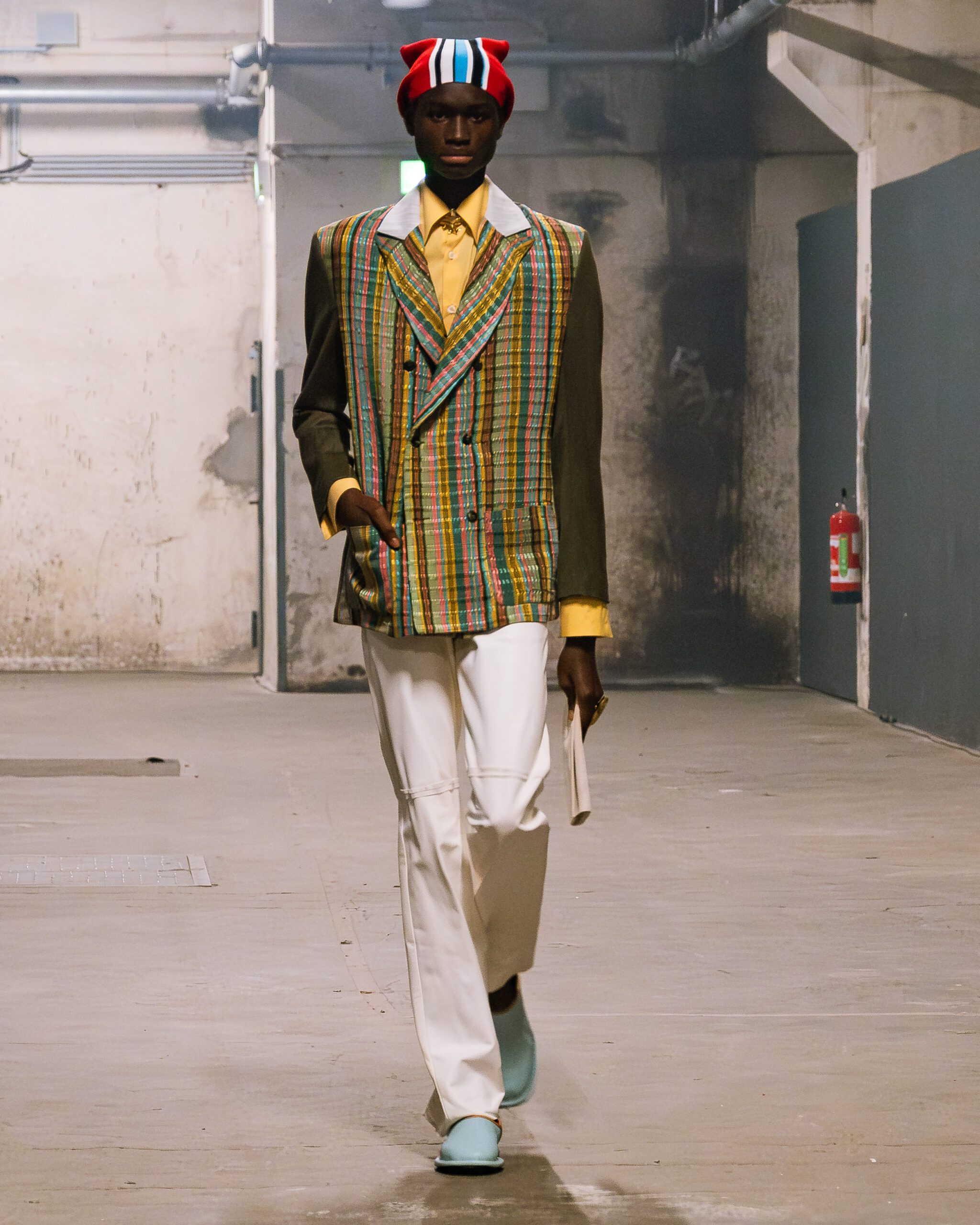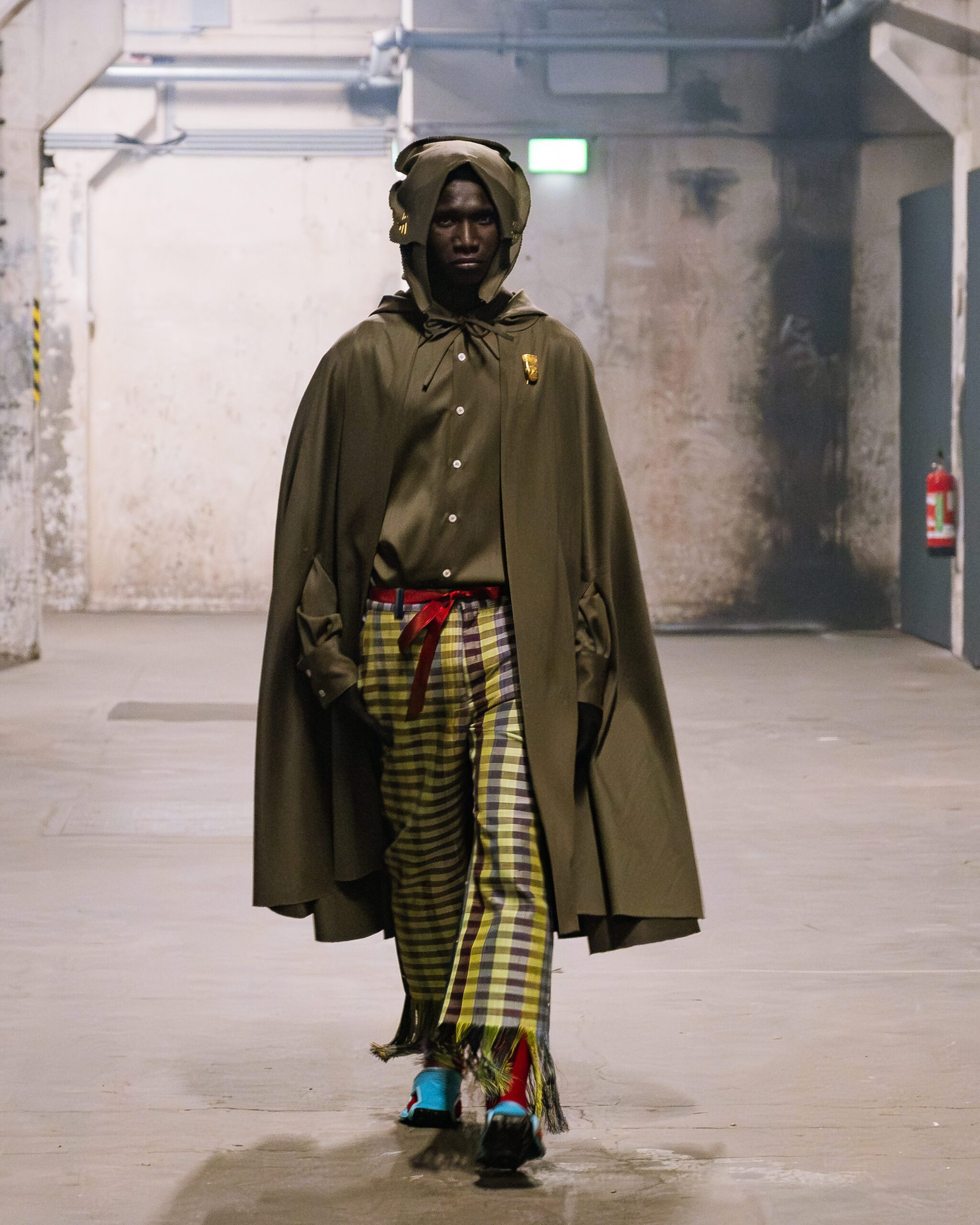 Dehors, Berlin serre les dents. Le thermomètre affiche –8°, le vent claque, les silhouettes se fondent dans des manteaux sombres. À l’intérieur d’Intervention, tout bascule : la salle se remplit de lignes longues, de couleurs vibrantes, de tissus qui captent la lumière. Kenneth Ize présente JOY, sa collection Automne-Hiver 2026‑27, et l’on sent très vite que ce mot n’est pas un slogan, mais une position. En regardant les looks arriver, quelque chose se détend, se réchauffe.