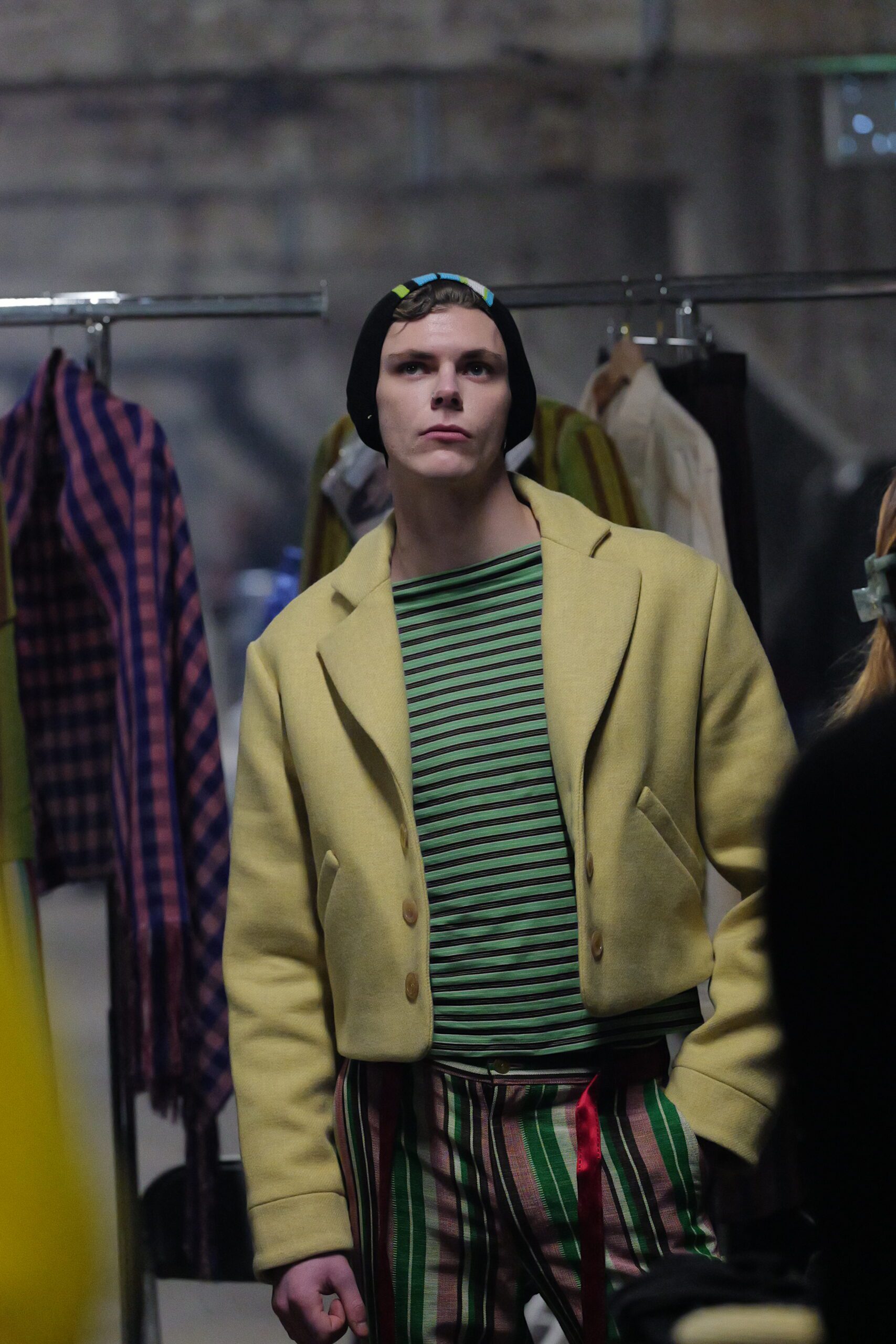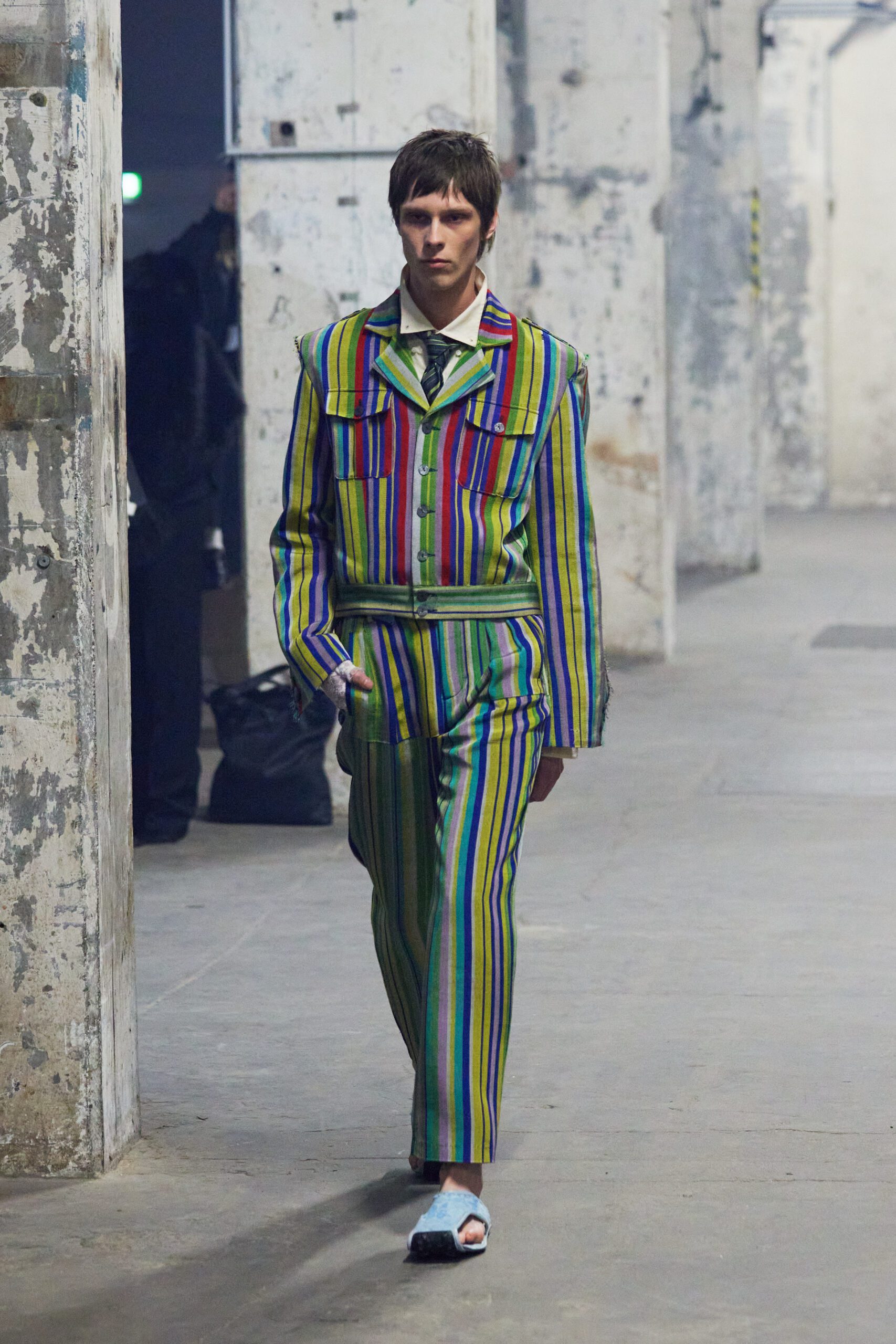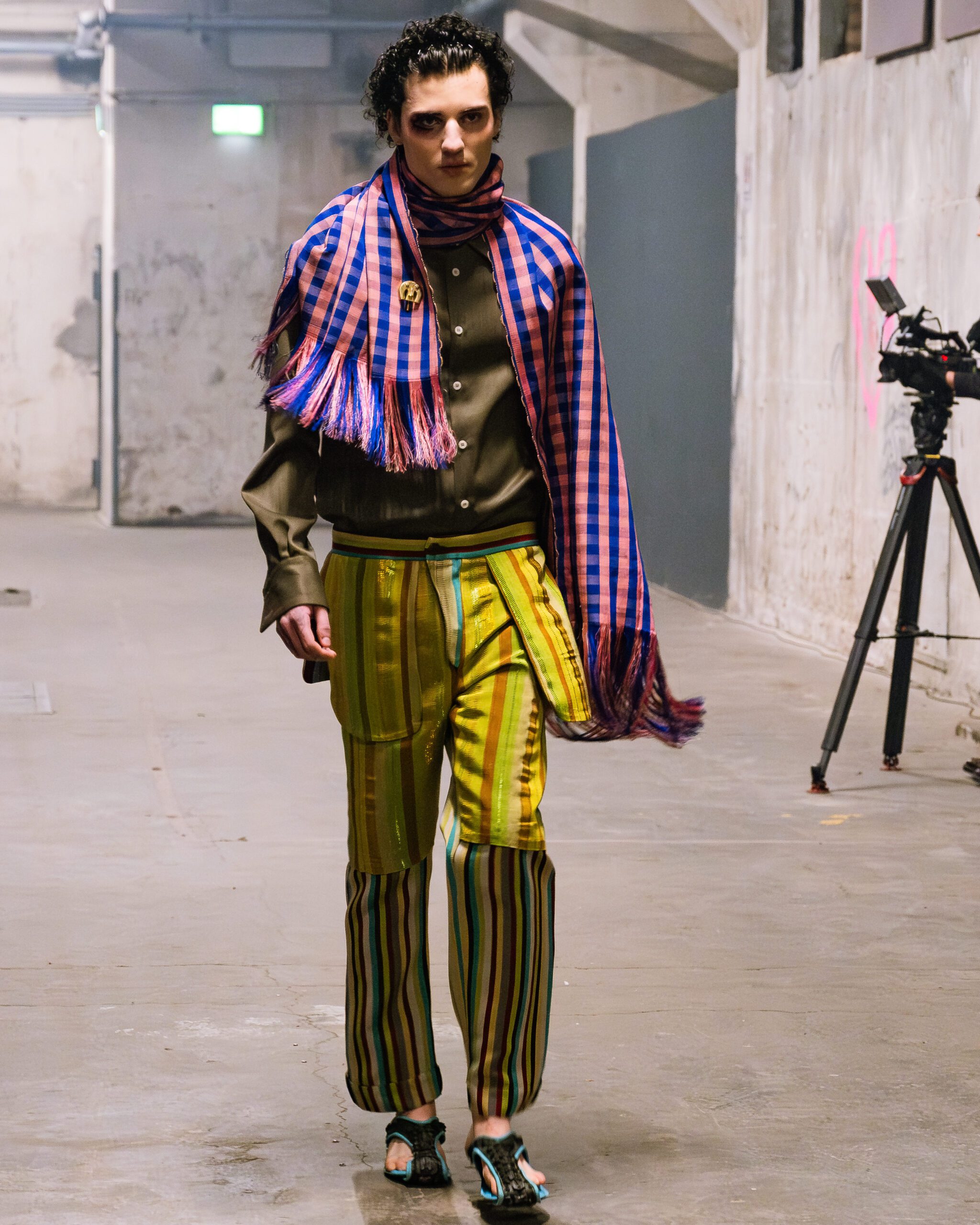 JOY est aussi une façon de rencontrer Berlin autrement. « The models, you know, Berlin is such a great city in terms of music, culture, diversity, and at first I was like, okay, yeah, Berlin, how’s that going to happen? But then I started thinking about how the energy would be and it really worked really well. » On retrouve cette énergie dans le casting, dans les corps qui avancent sans raideur, dans cette tension entre contrôle et abandon. Il cite Anthony, Reference Studio, Intervention, le casting director Alpha. Derrière les noms, on comprend surtout une chose : cette collection est le résultat d’un cercle vivant, pas d’une tour isolée.