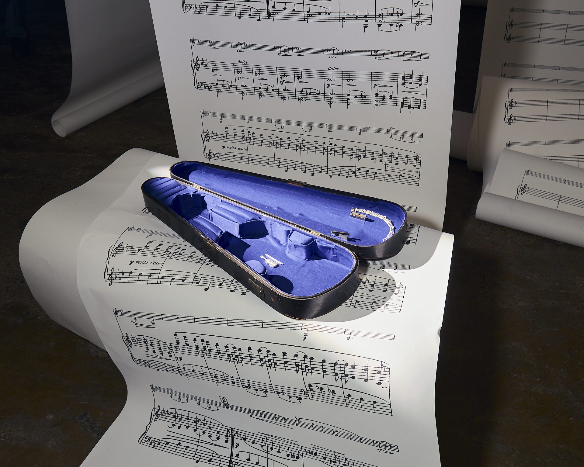 Pour cette saison, THE OUZE fait dialoguer ses bijoux avec la musique. Dans un espace pensé comme un atelier ouvert, une violoncelliste londonienne joue en live, non pas un récital parfaitement rodé, mais une partition en construction : notes répétées, essais, interruptions. Le son épouse le rythme de la main qui sculpte, dans une atmosphère intime, loin du tempo habituel de la mode.