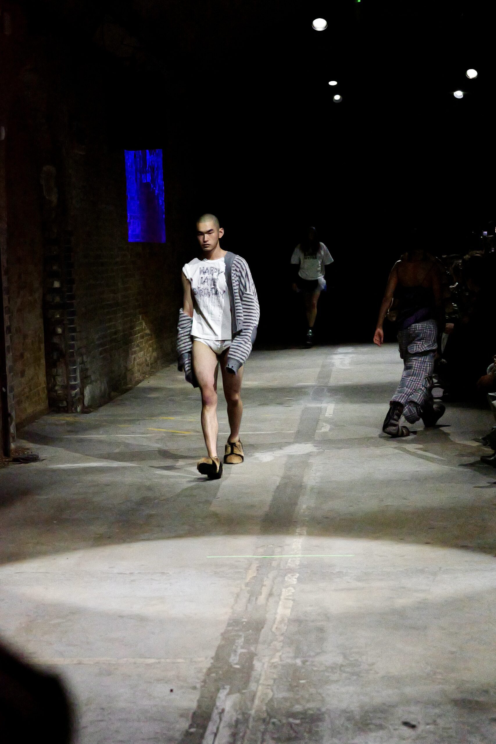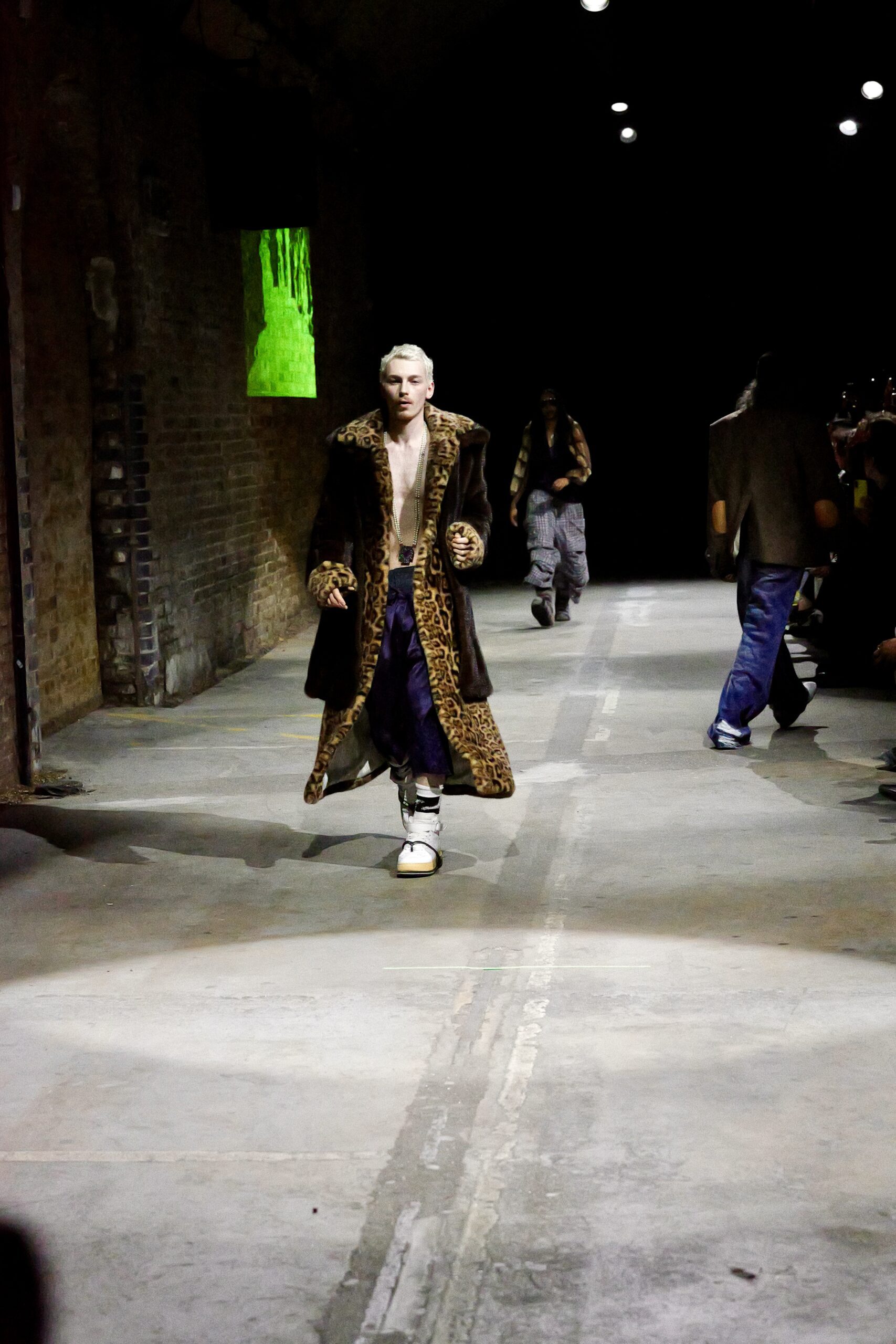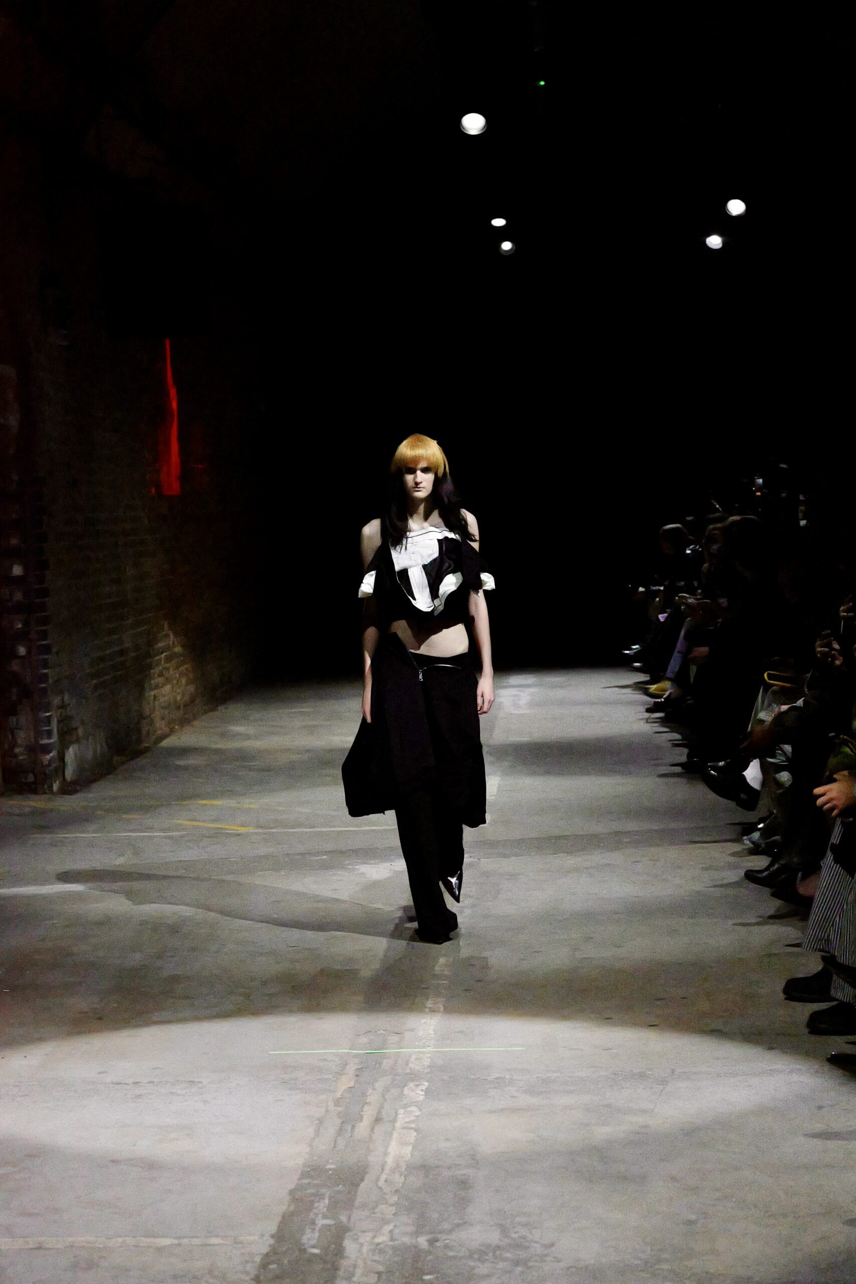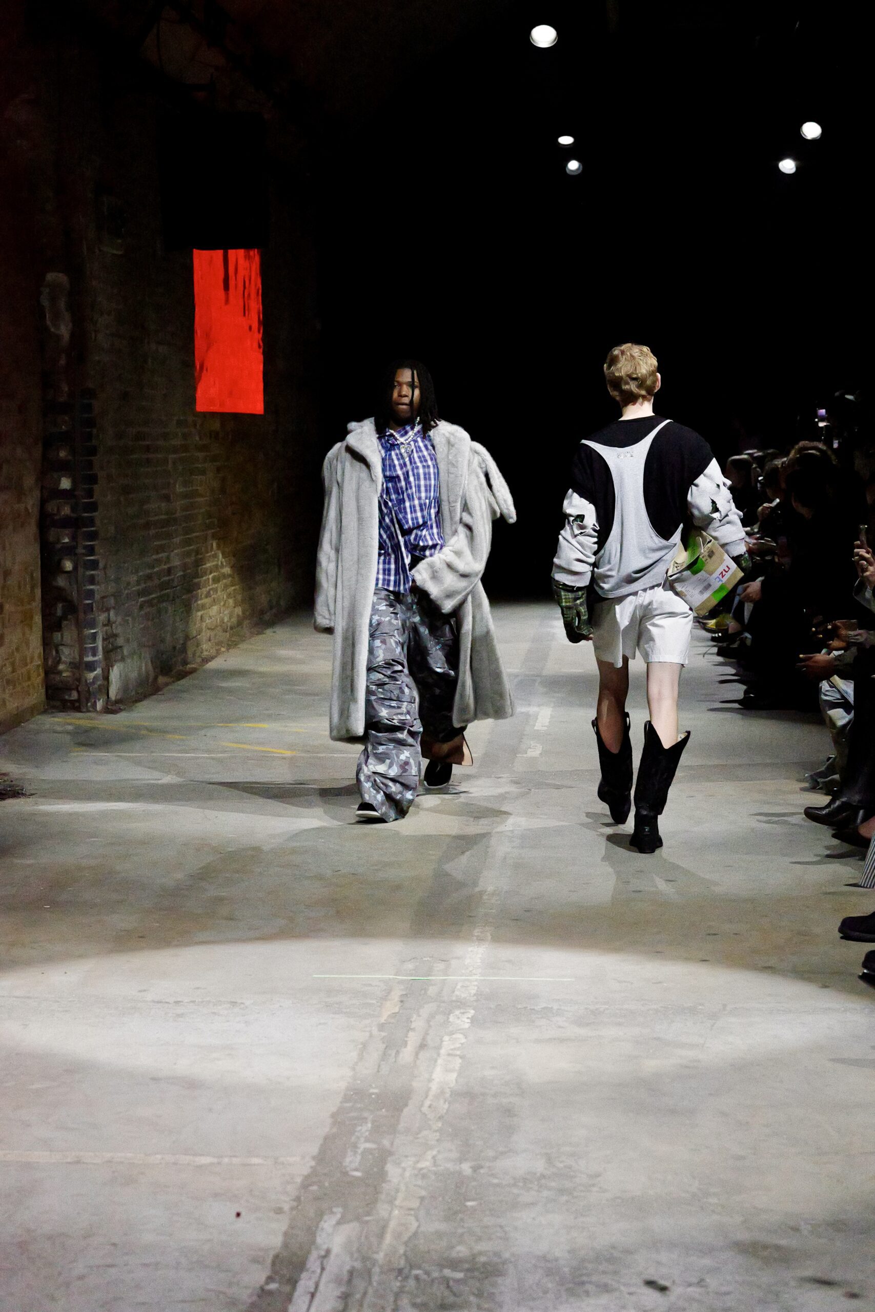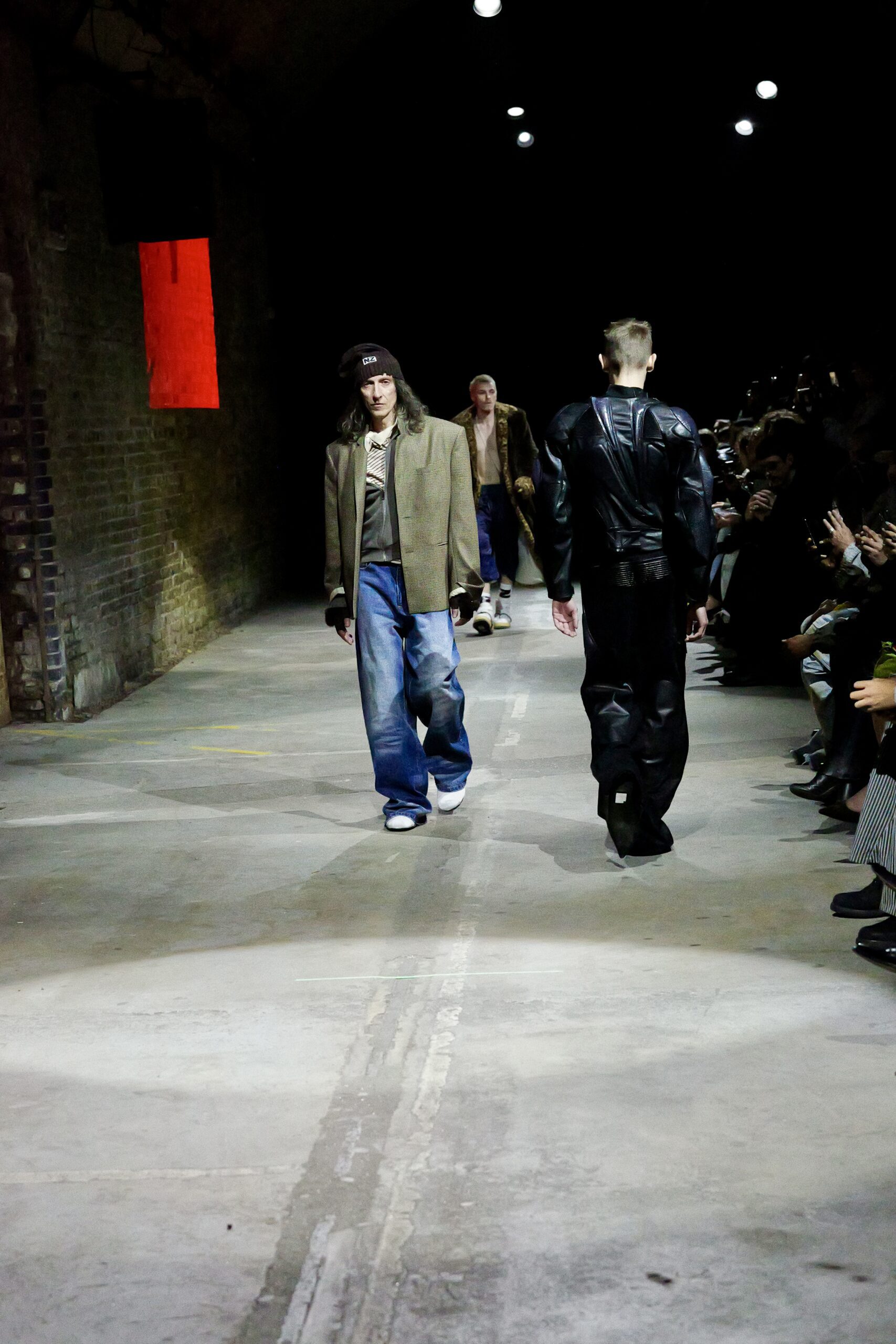Au milieu de ce ballet familial, une image a électrisé la salle : Mel B, icône pop et mère avant tout, défilant aux côtés de sa fille. Plus qu’un simple cameo de célébrité, la scène ressemblait à un chapitre ajouté au roman familial de Zinko. Mère et fille, côte à côte, dans ce tunnel de street art où les murs respirent encore la peinture fraîche, donnaient l’impression d’entrer dans le portrait de famille que la créatrice dessine depuis des années. Autour d’elles, le casting mixait générations, corps et énergies, comme si le vestiaire Zinko devait se vivre en tribu plutôt qu’en solo, avec des pièces prêtes à être échangées, réappropriées, superposées selon l’humeur.