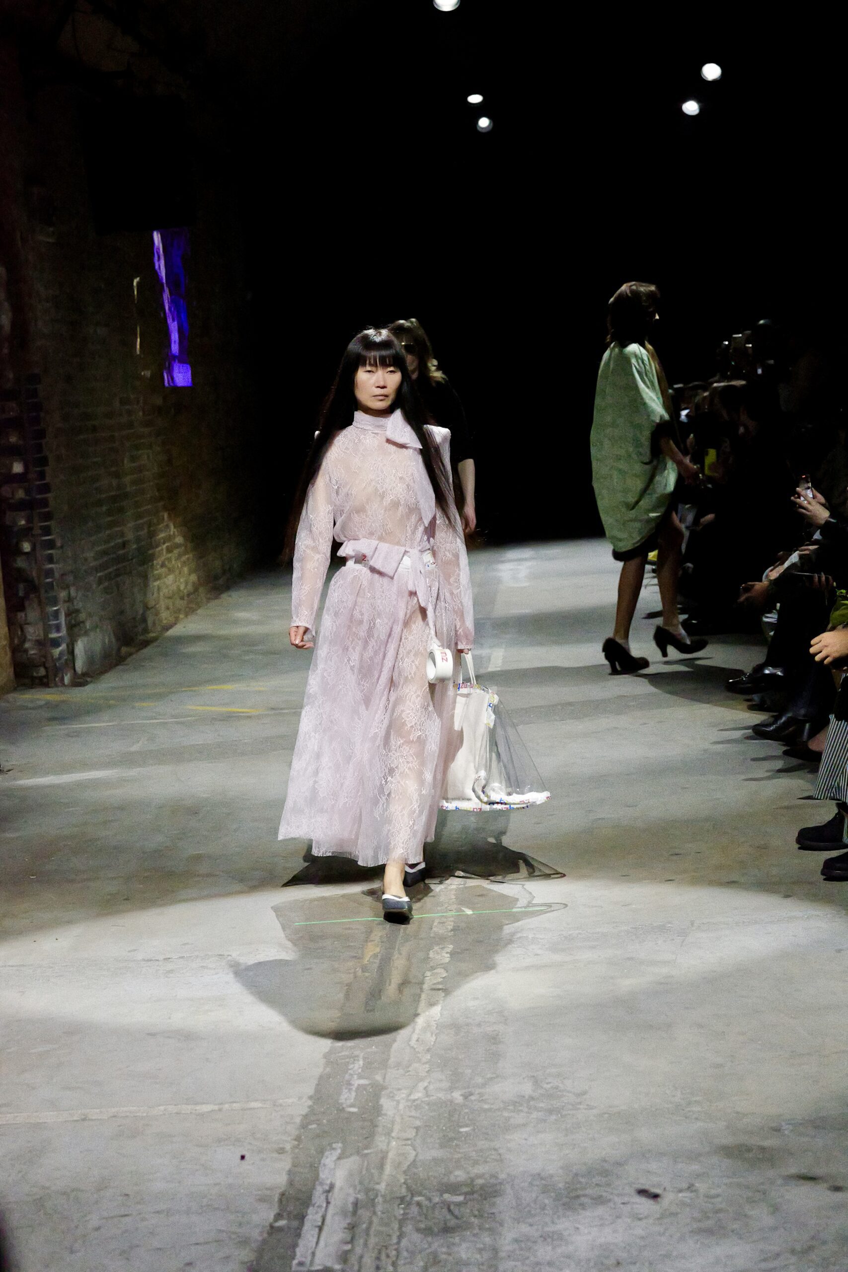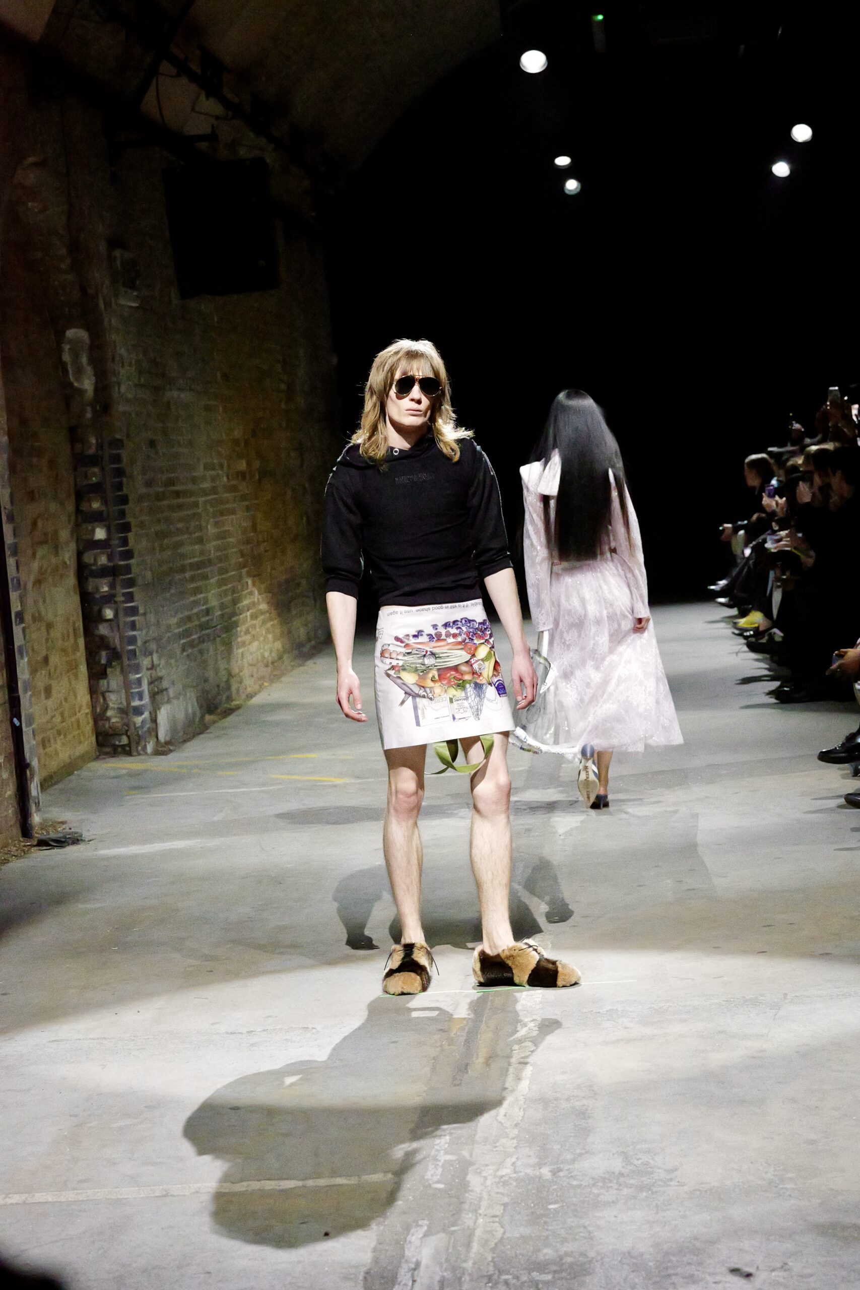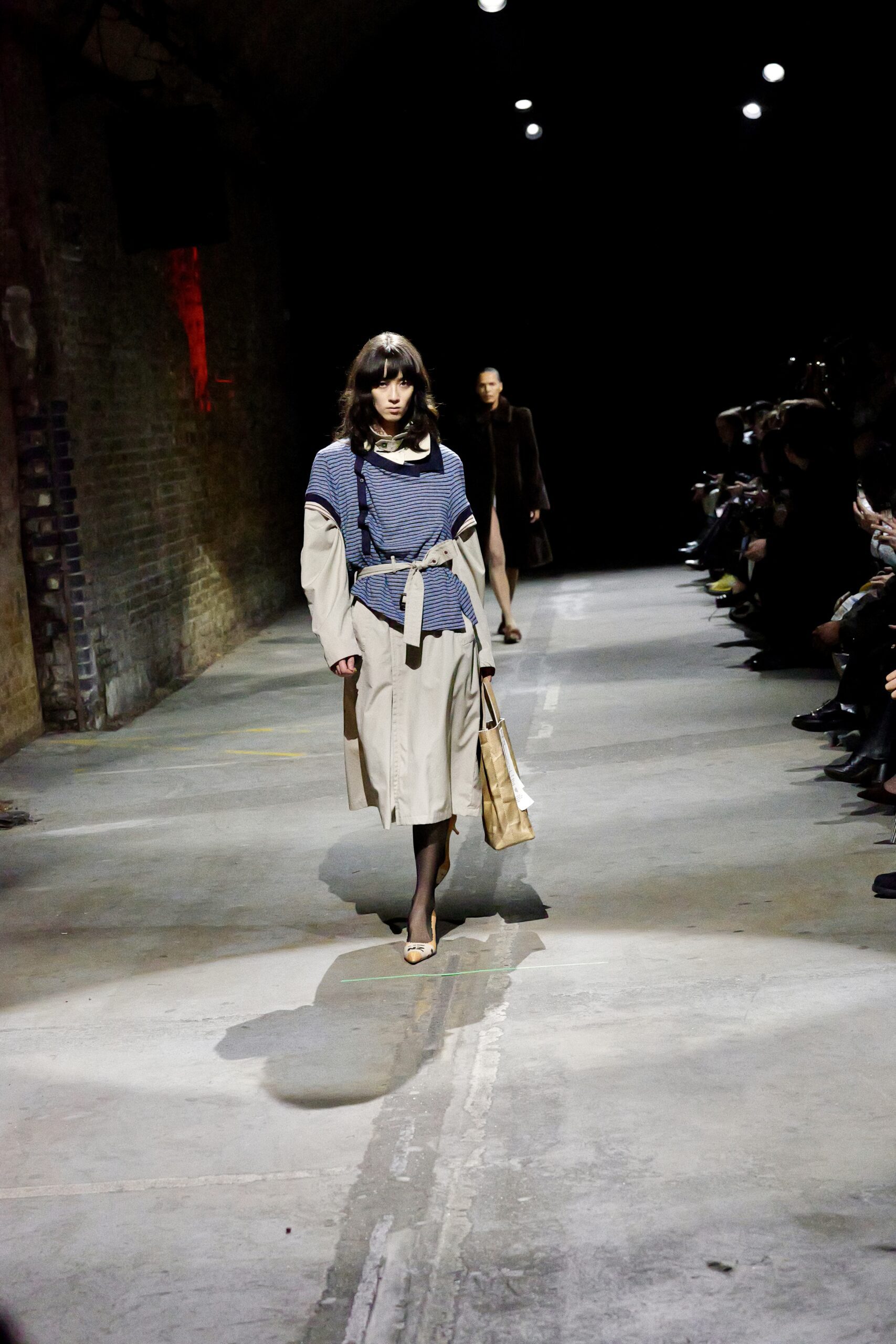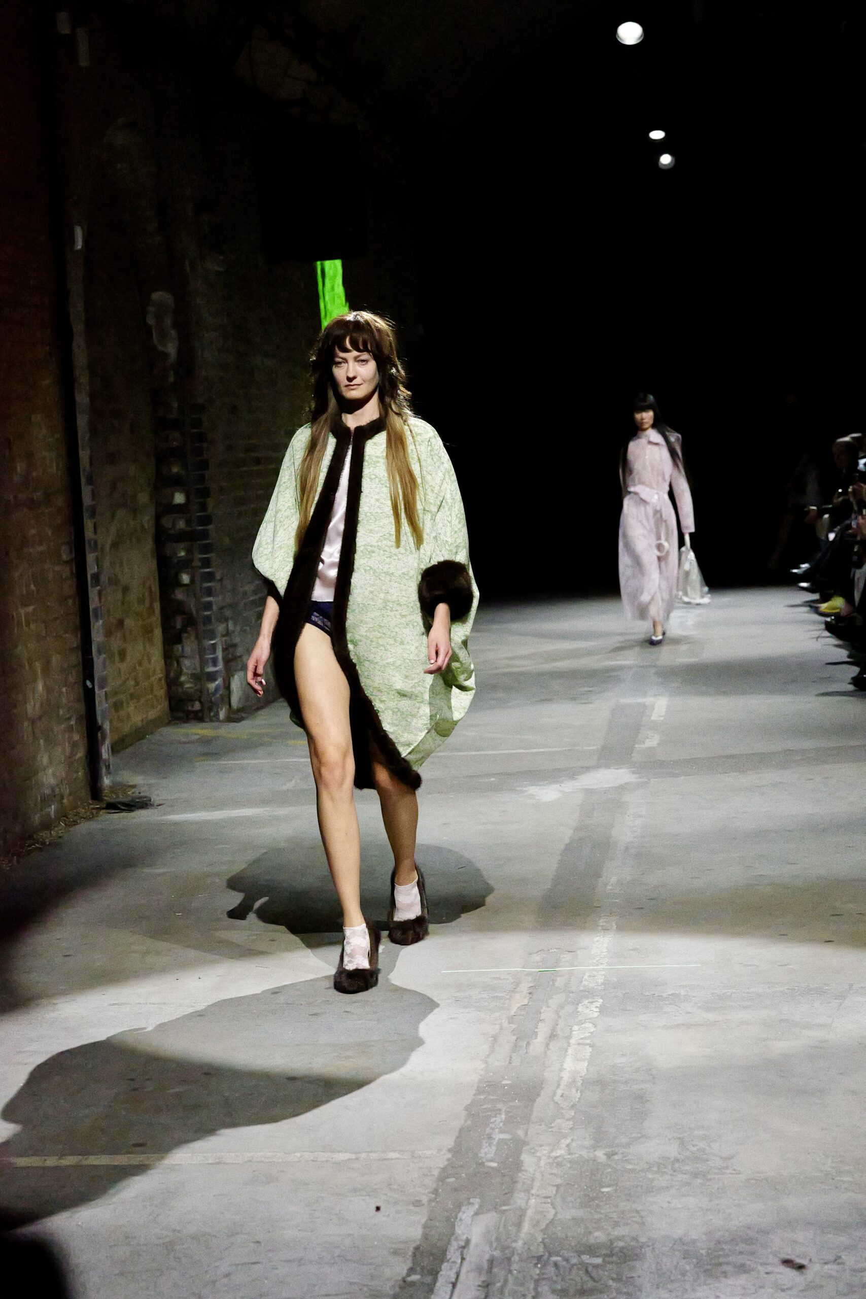 Il y a des défilés que l’on traverse, et d’autres qui s’inscrivent dans la mémoire comme un souvenir de famille. Celui de Natasha Zinko, présenté sous les arches de Waterloo, appartient à cette deuxième catégorie : un moment de mode où l’émotion déborde des silhouettes pour se déposer sur chaque regard, chaque pas, chaque geste. Née en Ukraine et installée à Londres, la créatrice plonge avec « Family Bizness » dans un territoire intime : celui de l’Odesa post-soviétique de son enfance, des marchés saturés de vie, des vêtements qui circulent d’un corps à l’autre. Ici, pas de glamour figé, mais une beauté forgée dans le désordre du quotidien, dans ces minutes volées où l’on s’habille en courant après un enfant, un travail, un rêve.