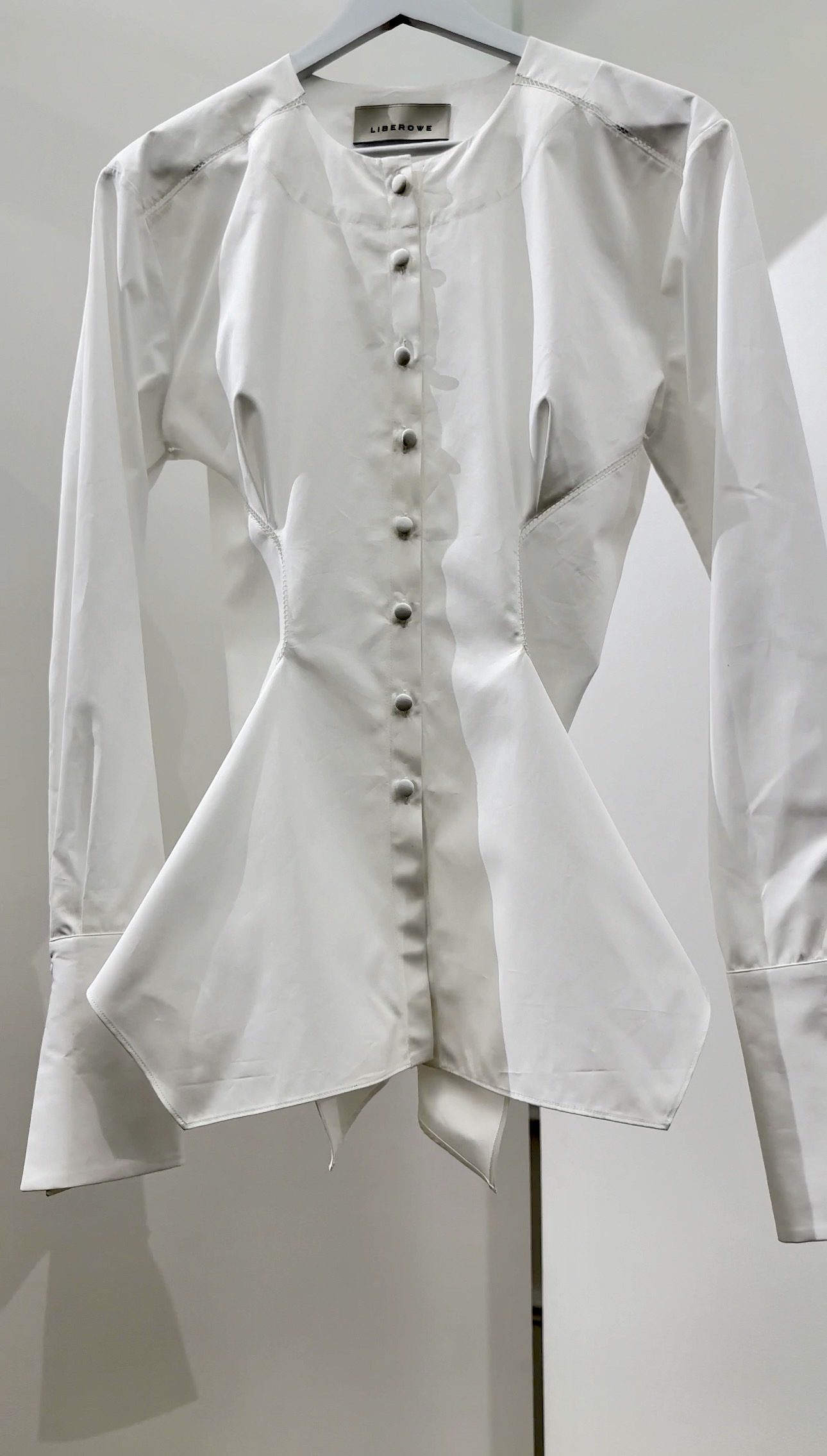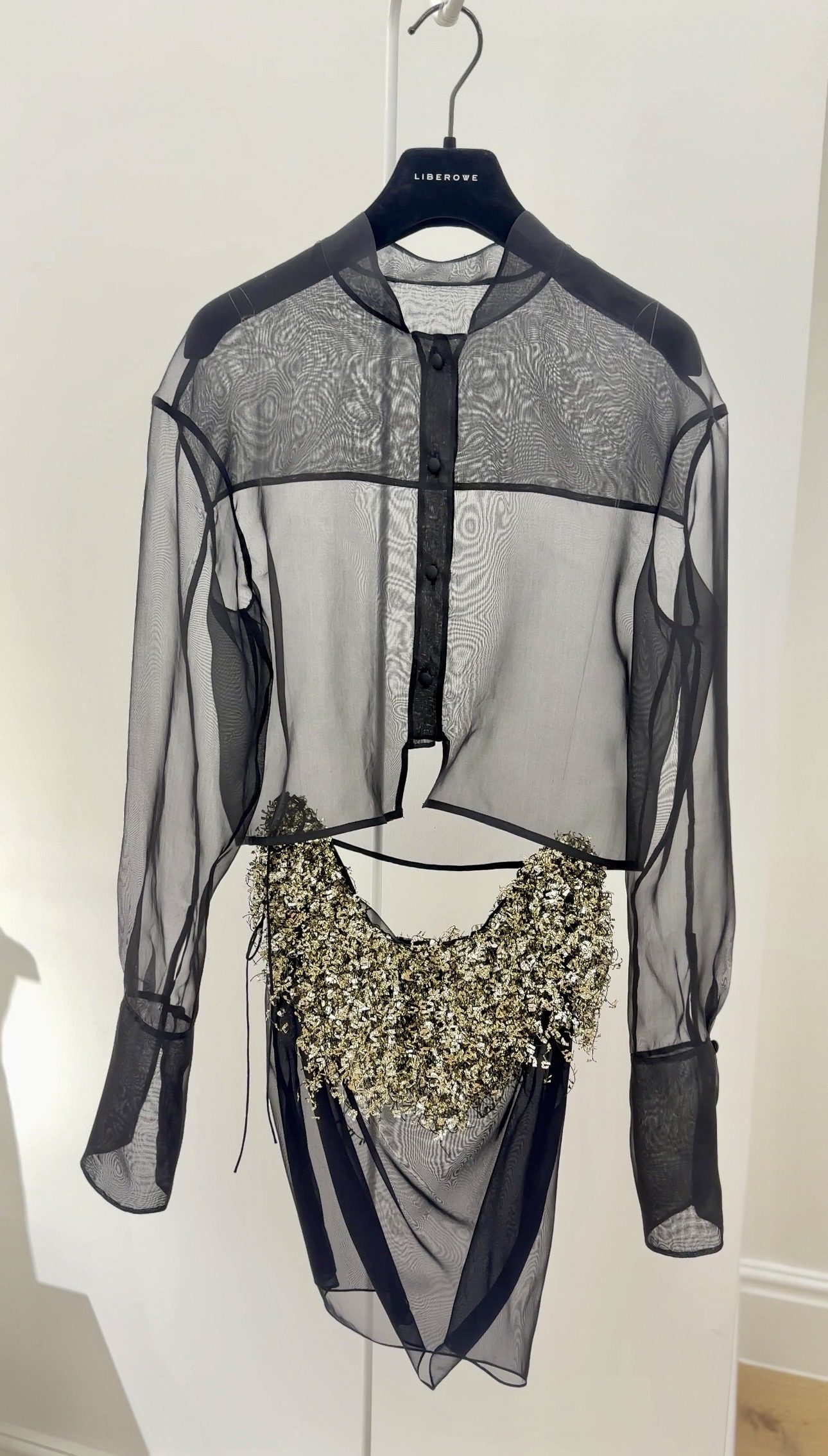 Si Liberowe possède une ligne directrice, c’est celle-là : l’équilibre. Entre la veste à col Nehru — pièce fondatrice de la maison, directement inspirée du sherwani indien masculin — et les silhouettes fluides des robes du soir. Entre la rigueur du tailleur et la légèreté des superpositions. Entre la force et la délicatesse. Entre l’Orient et l’Occident.
